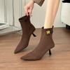 Outono e Inverno Novo Estilo Stiletto Bico Fino Botas Femininas Salto Alto Inverno Justas Quentes Slim Botas Elásticas Curtas Femininas Estilo Francês