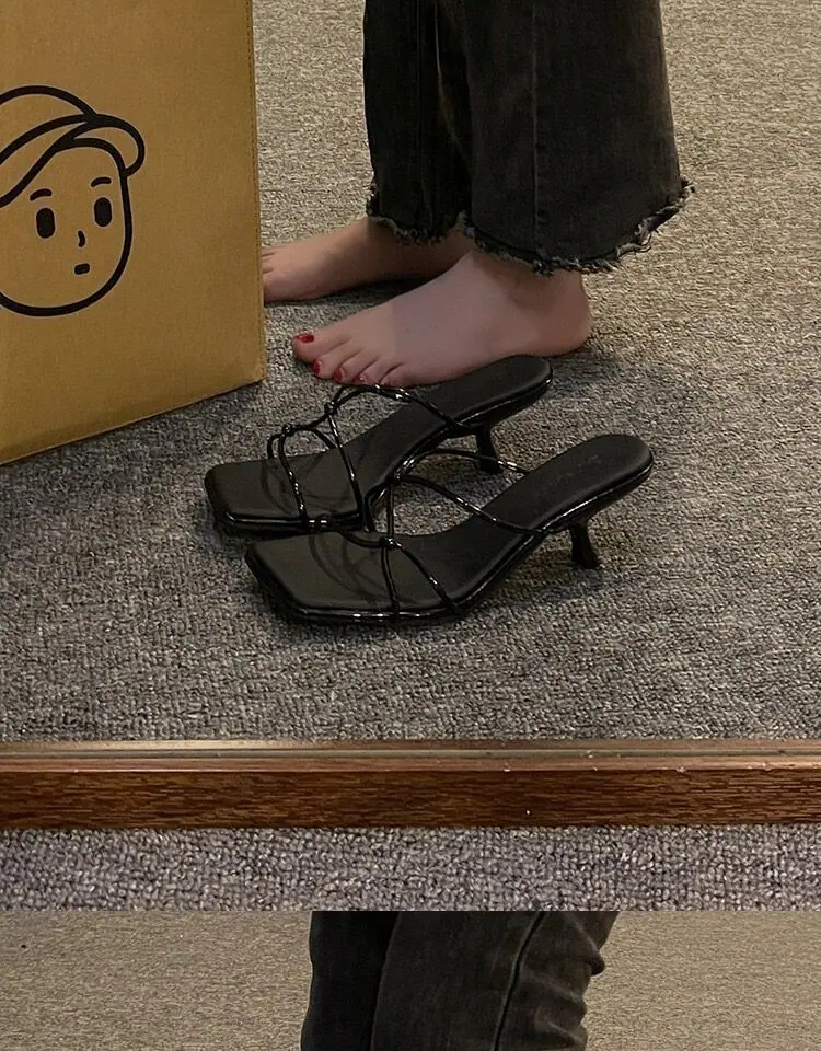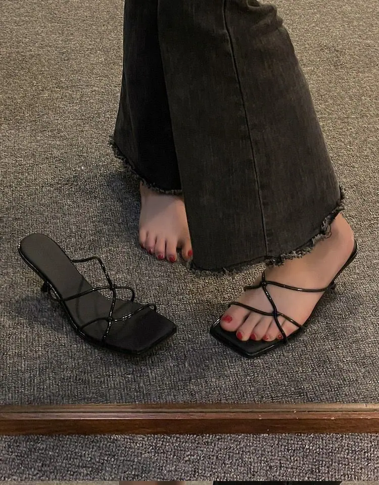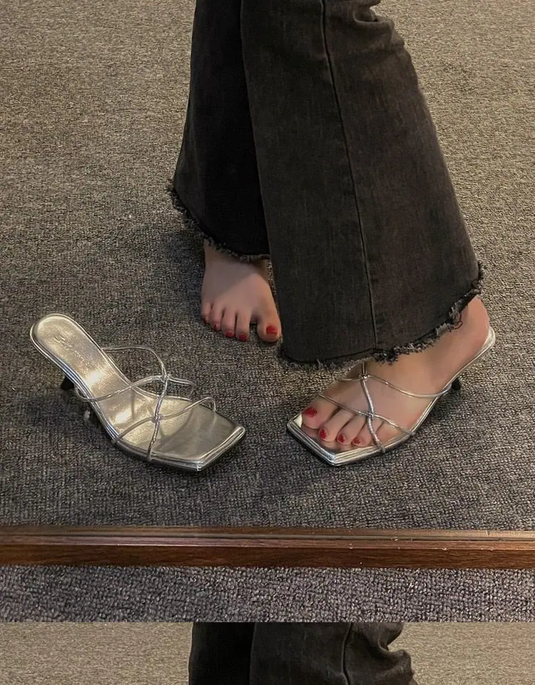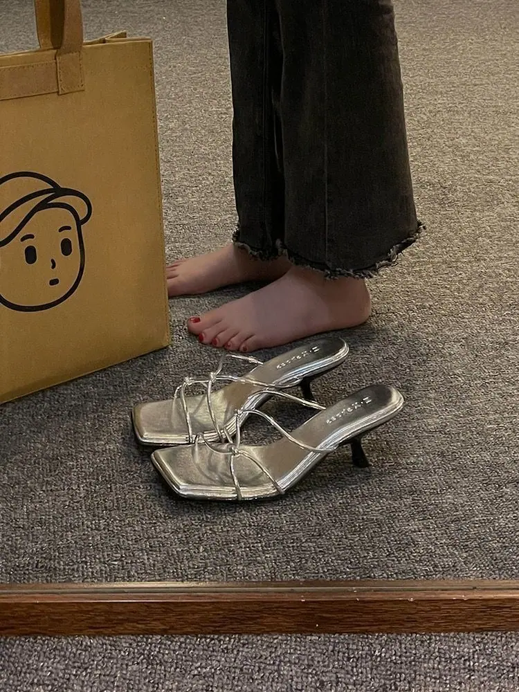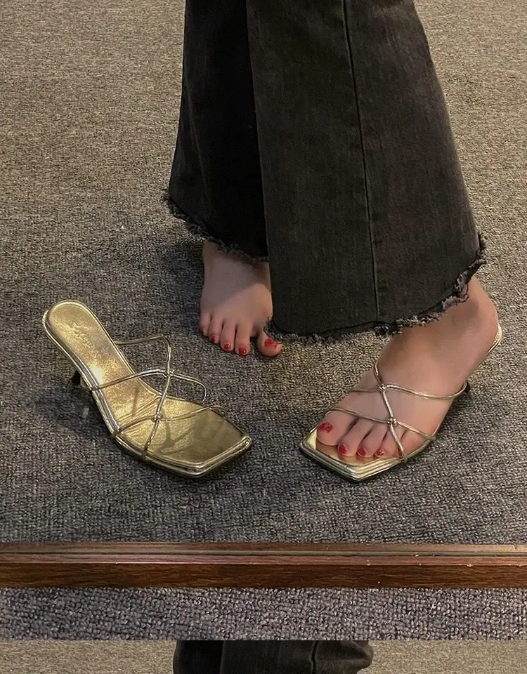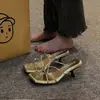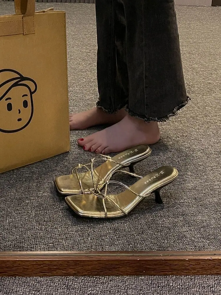 Sandálias Romanas Rasteiras Sandálias Douradas Europeias e Americanas Femininas 2024 Verão Novas Salto Fino Tira Cruzada Sandálias Sexy
