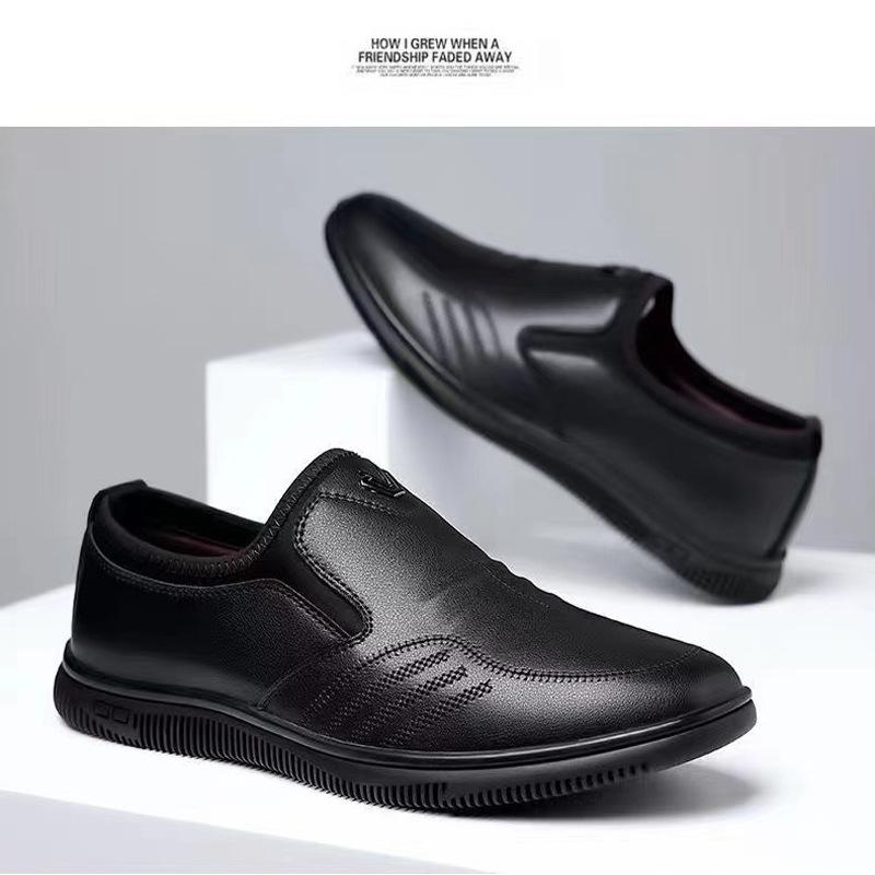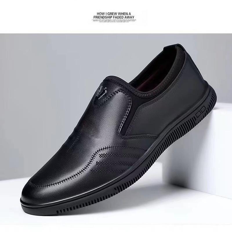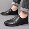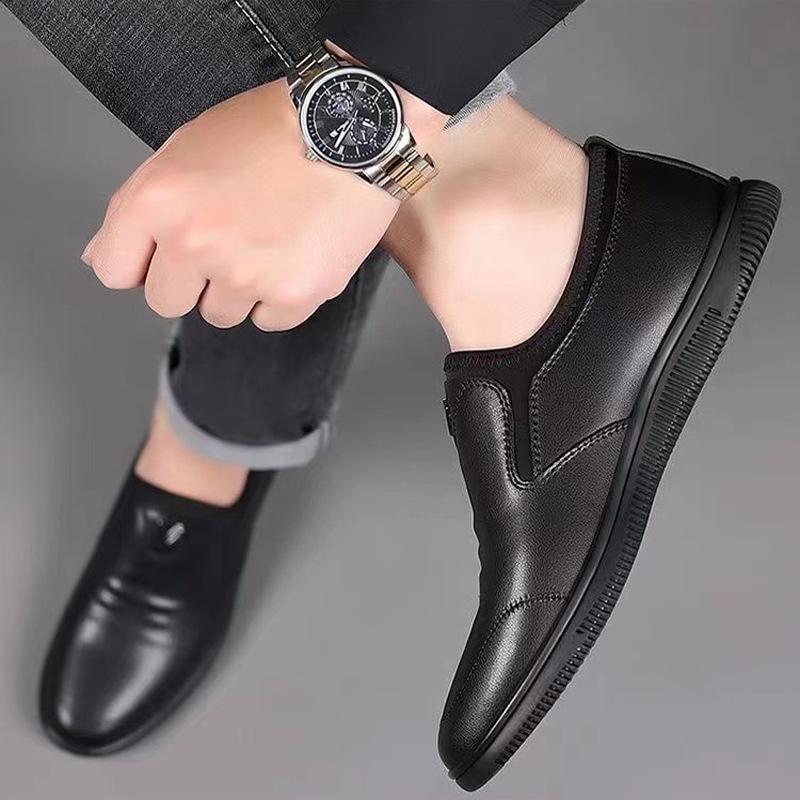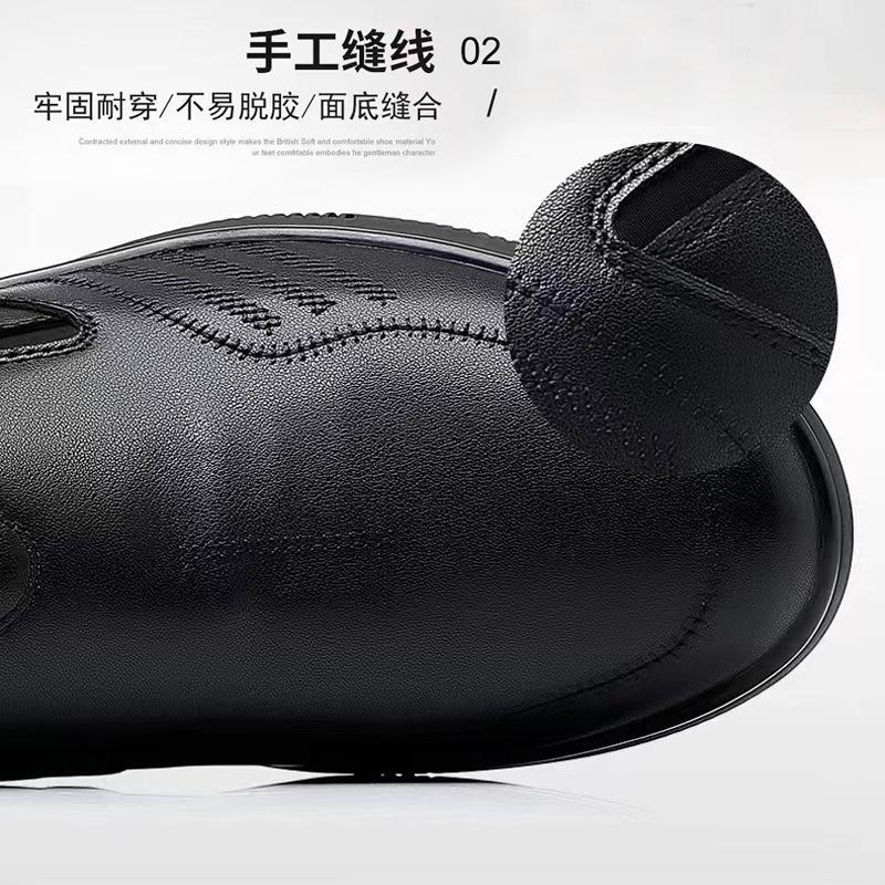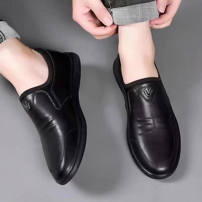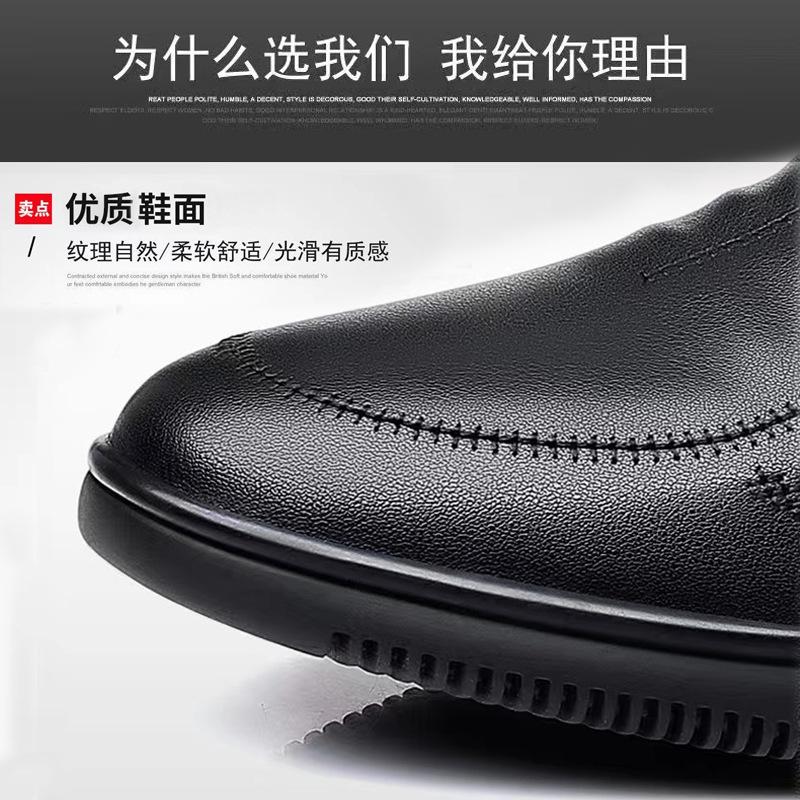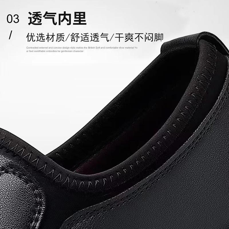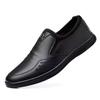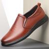 Sapatos de Couro Masculinos 2025 Outono Novo Sola Macia Slip-on Sapatos de Trabalho Sapatos Casuais Masculinos Pretos de Bico Redondo para Pais de Meia-Idade