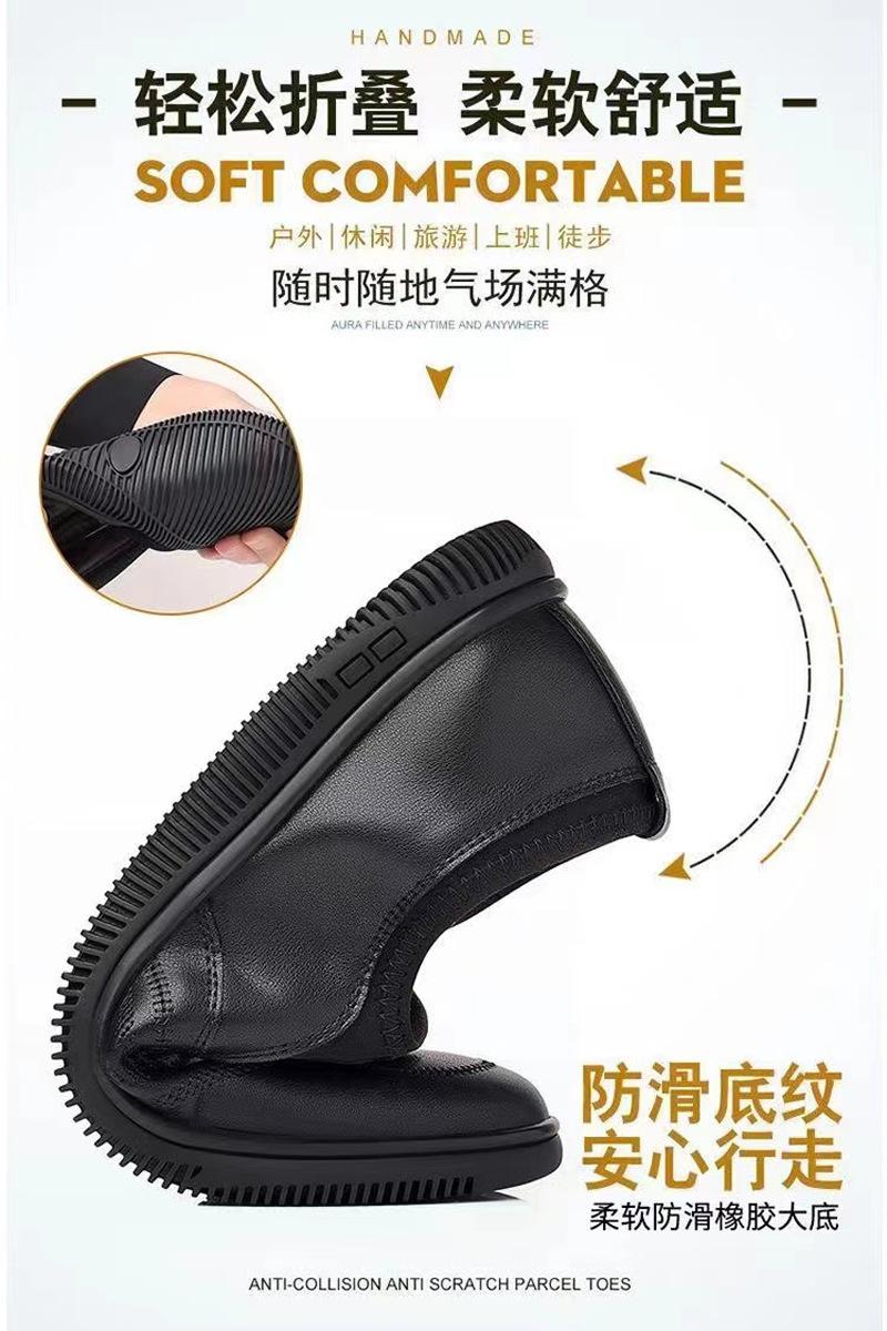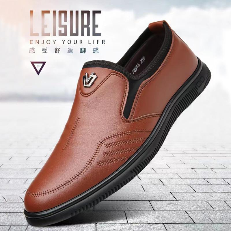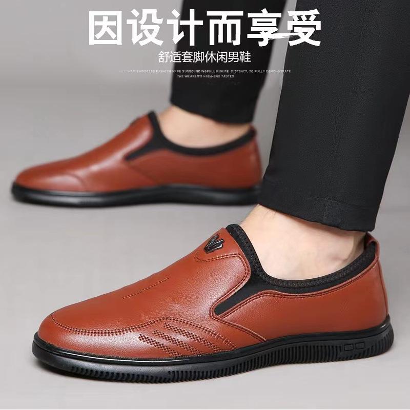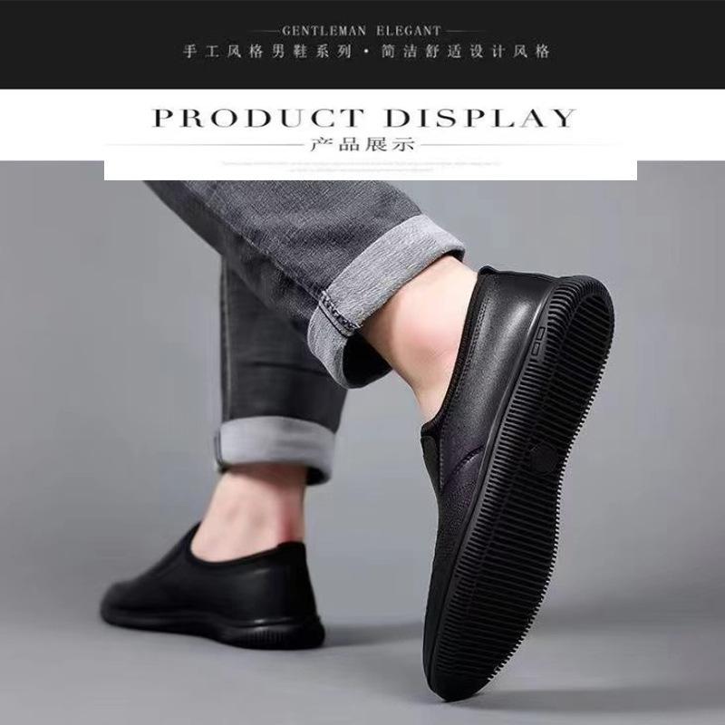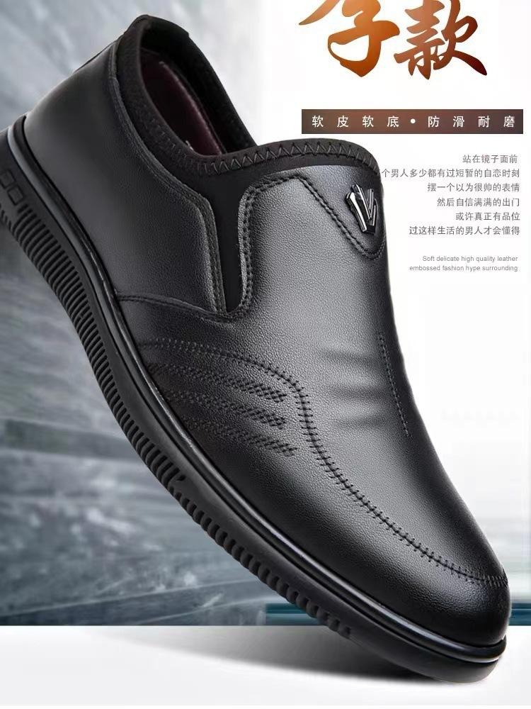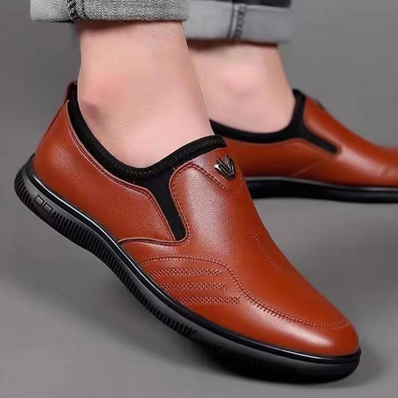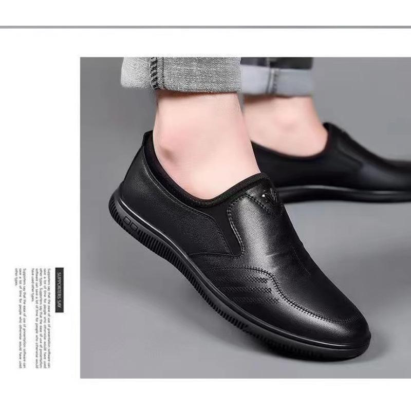 Sapatos de Couro Masculinos 2025 Outono Novo Sola Macia Slip-on Sapatos de Trabalho Sapatos Casuais Masculinos Pretos de Bico Redondo para Pais de Meia-Idade