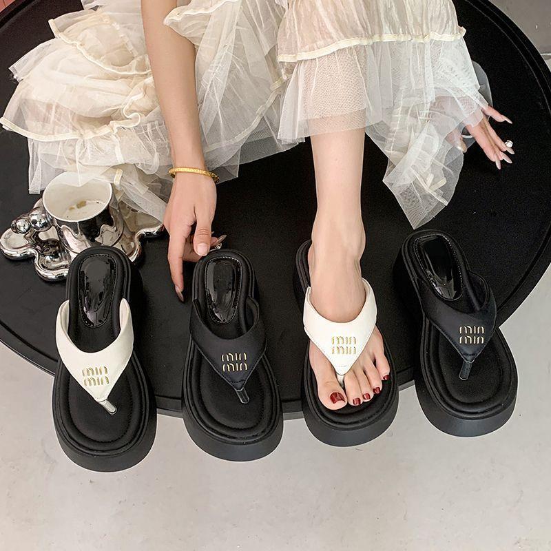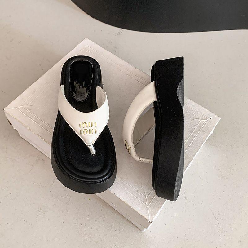Chinelo de dedo plataforma sola grossa celebridade da internet feminino verão moda exterior versátil sandálias de praia chinelos femininos 2025 novo