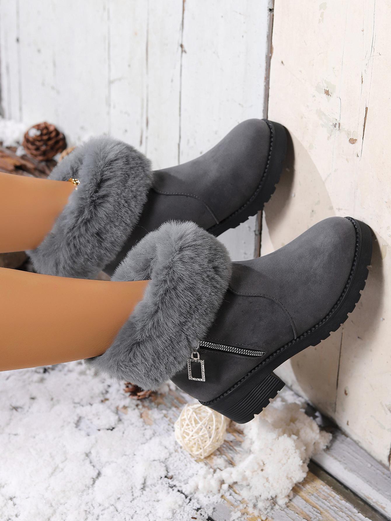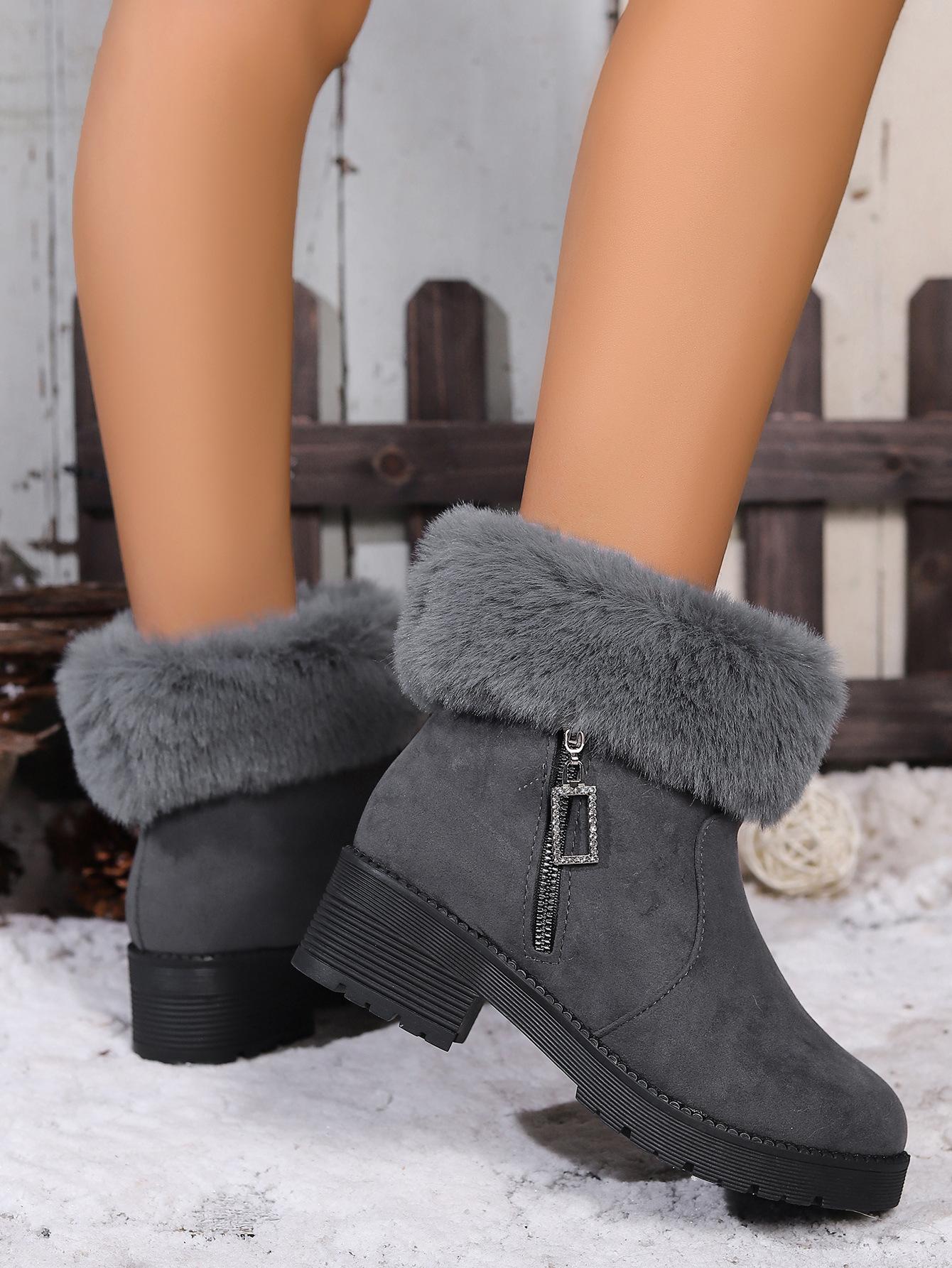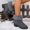 Botas de neve quentes de cano médio transfronteiriças 2025 inverno novas mais veludo mais grossas tamanho grande boca de pele zíper lateral sapatos de algodão mulheres