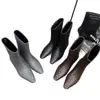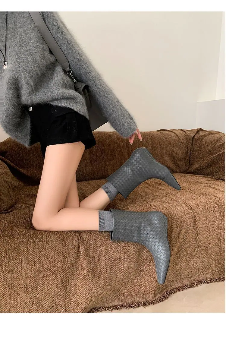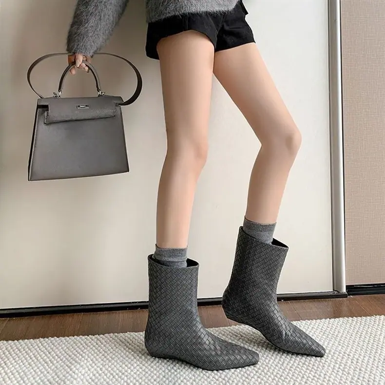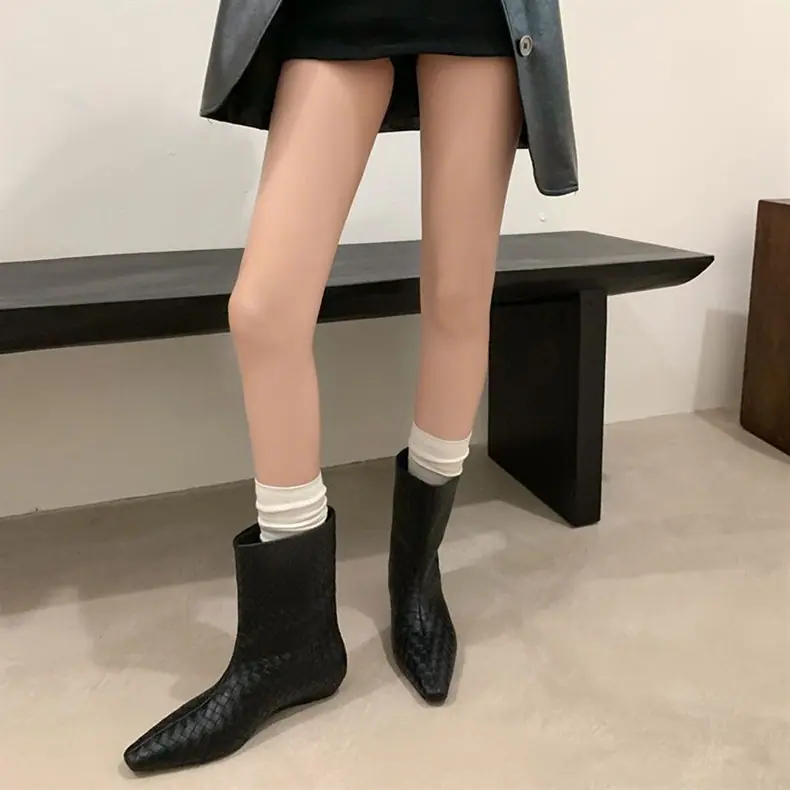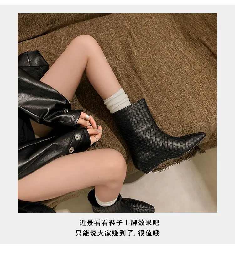 2025 Outono/Inverno Novas Tricotadas Soltas Mangas Salto Anabela Retas Meia-Panturrilha Botas Fashion Versátil Bico Quadrado Temperamento Botins
