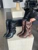 2025 Novo Design de Nicho Fivela de Cinto Salto Grosso Botas de Cano Médio para Mulheres Botas Estilo Britânico Botas de Pelúcia Cavaleiro