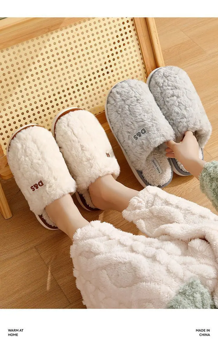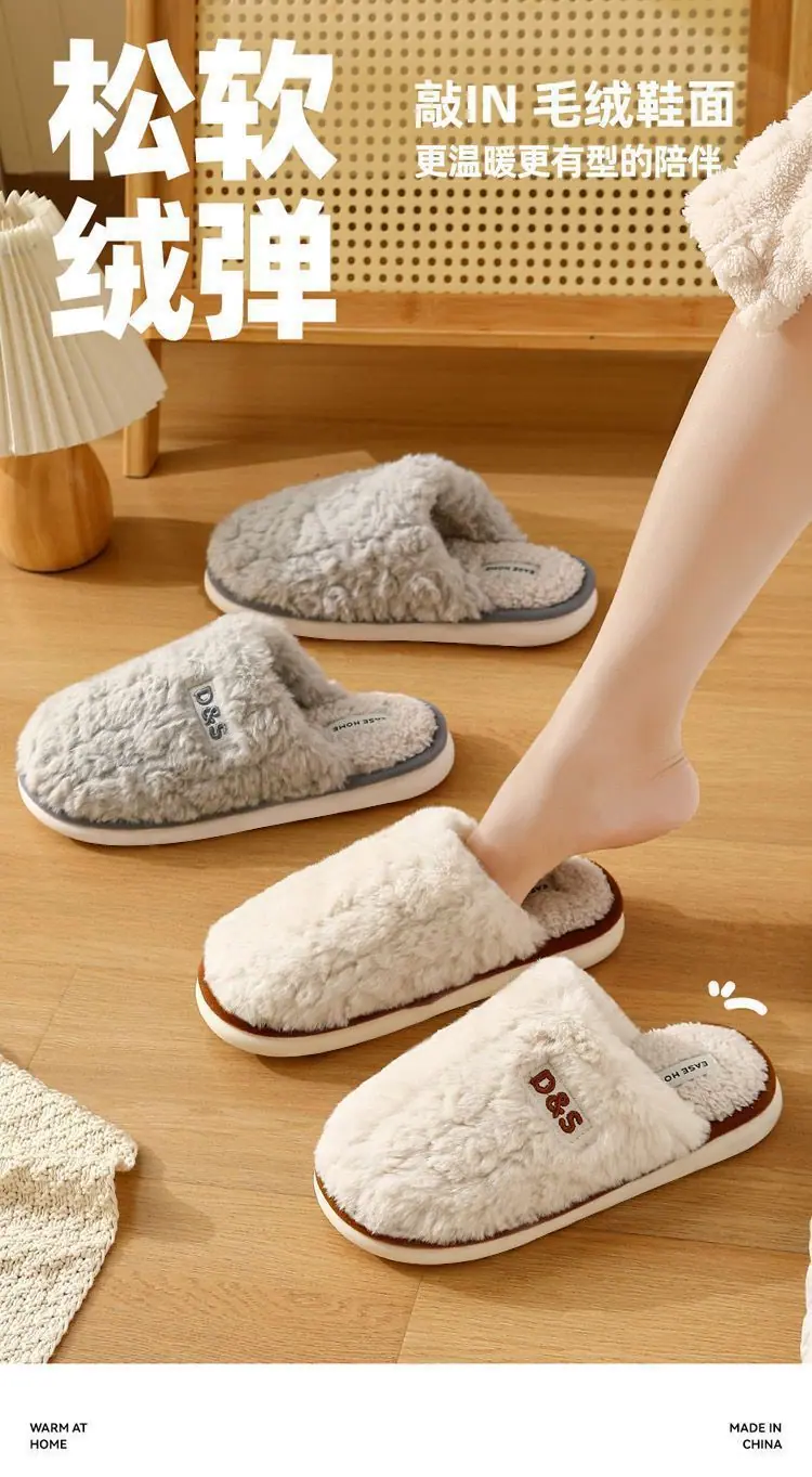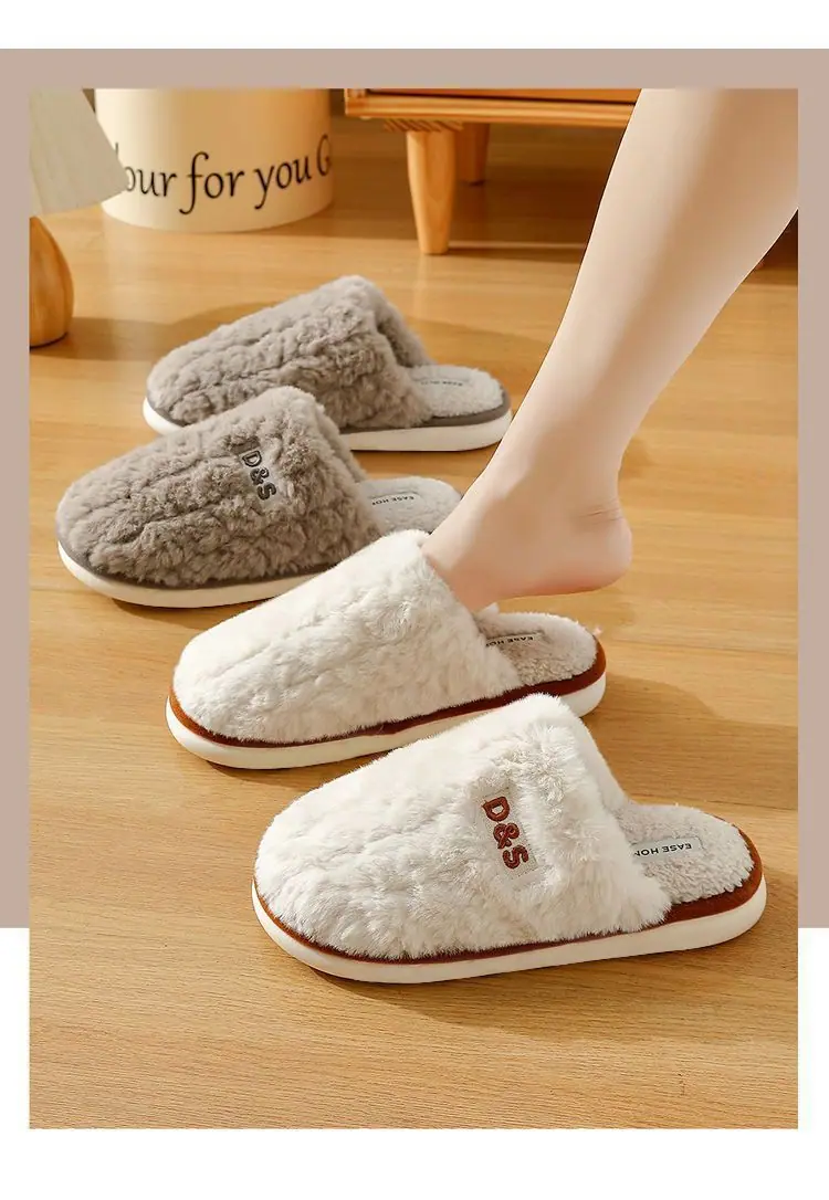 2026 novos chinelos de algodão femininos outono e inverno para interior casa doméstico antiderrapante quentes pelúcia felpudos chinelos de bico fechado masculinos