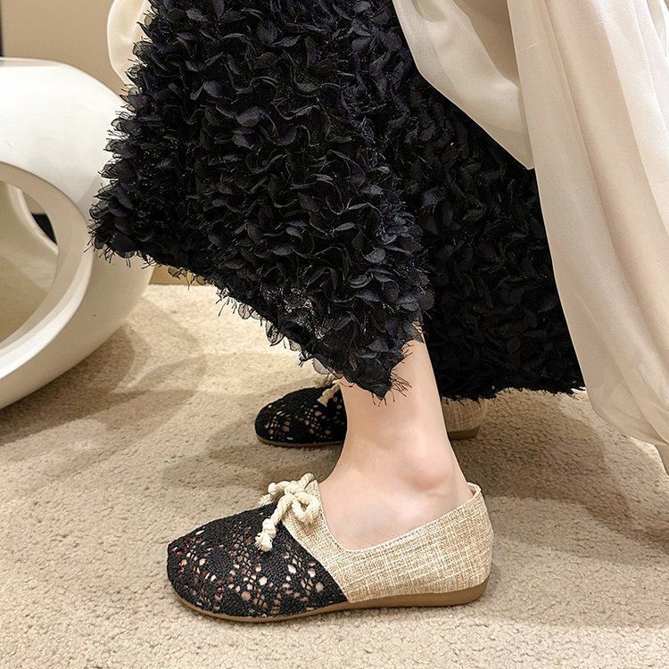 2025 Novo Mesh Vazado Respirável Sapatos de Feijão Femininos Slip-On Solado Macio Casual Flat Bico Redondo Raso Sapatos Solteiros