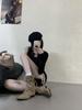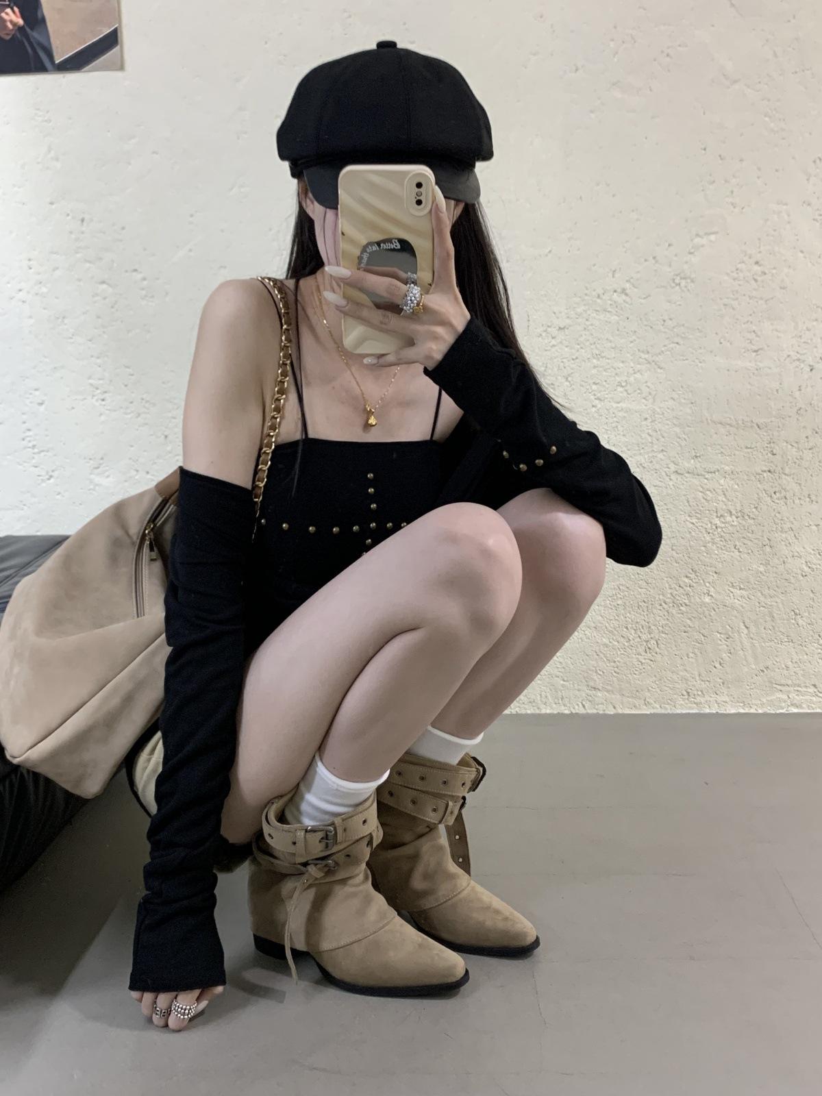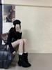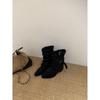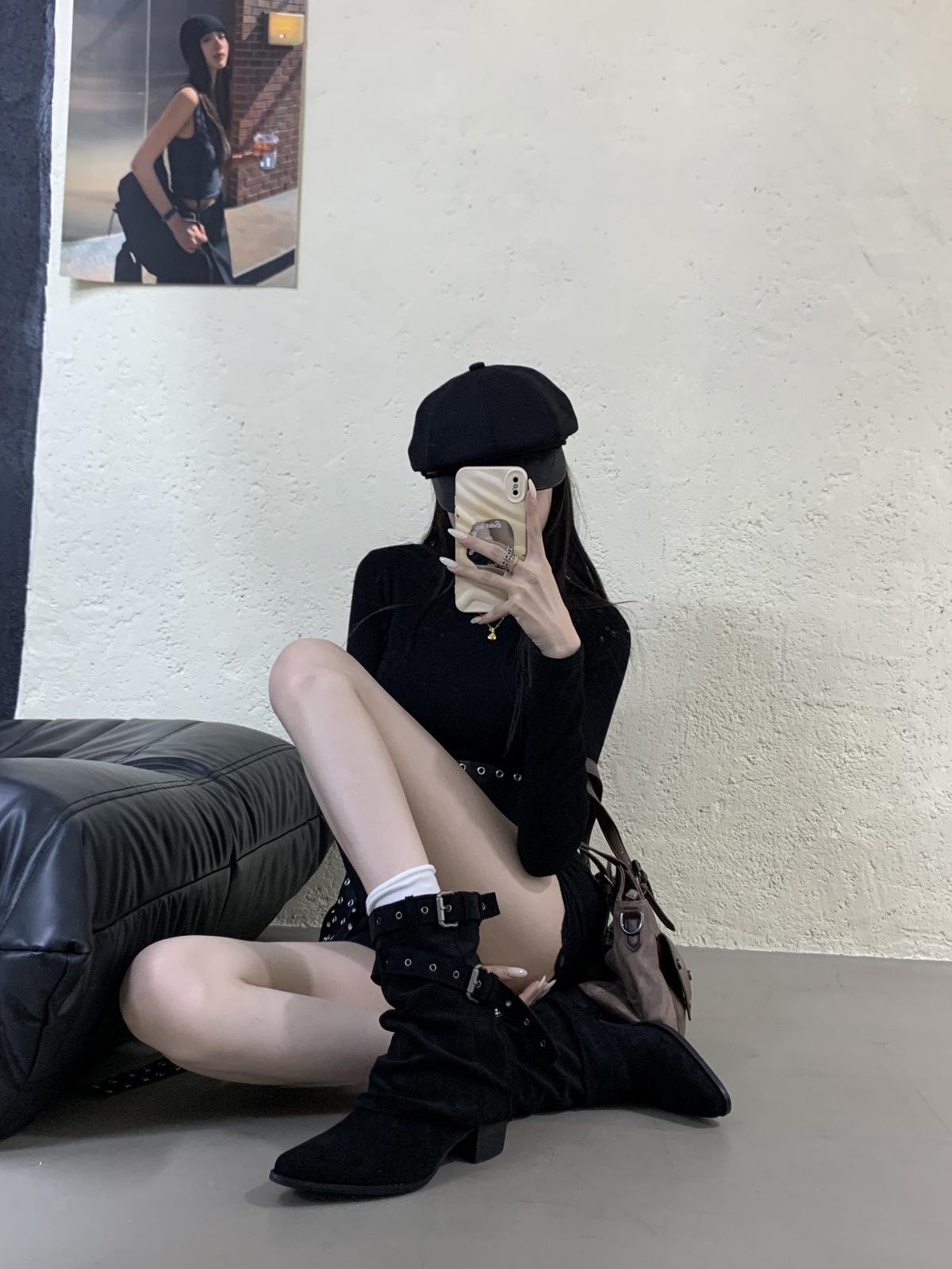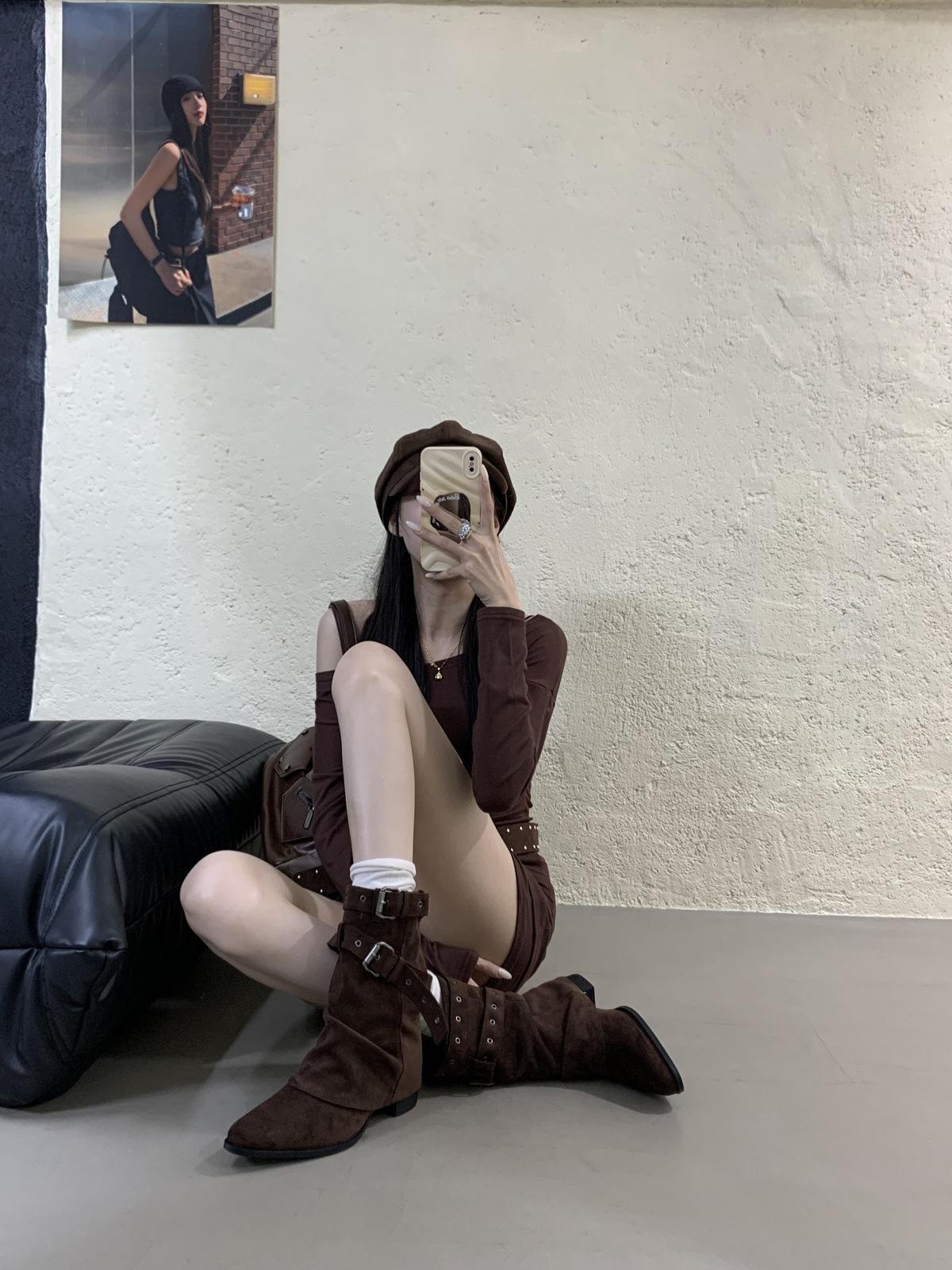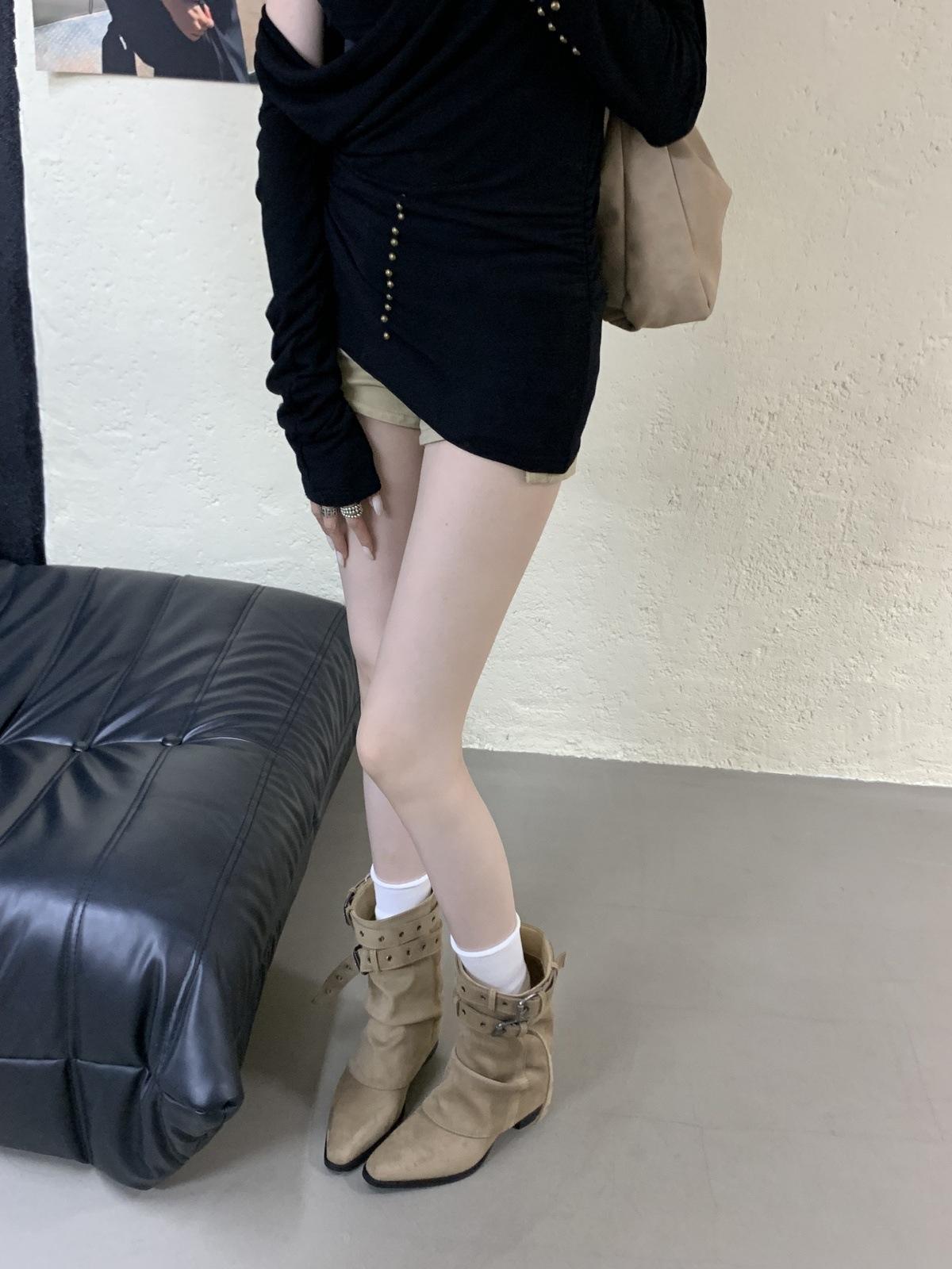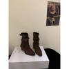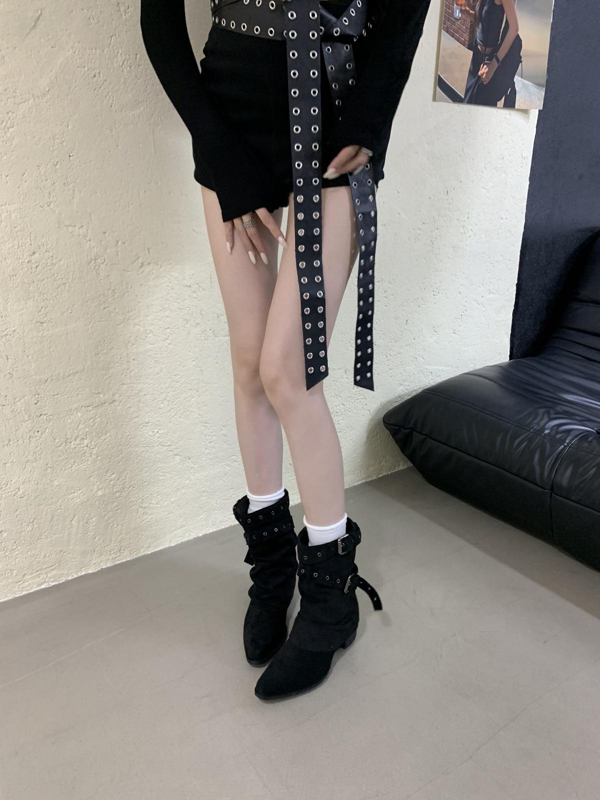 Botas de Tornozelo Novas Outono/Inverno 2025 Camurça Cor Café Femininas Bico Fino Cano Médio Botas Tamanho Plus Fivela de Cinto Sapatos de Bota