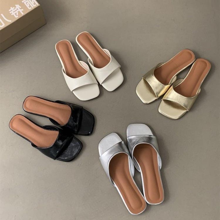 Chinelos romanos retrô minimalistas chinelos femininos sapatos baixos preguiçosos mules sandálias 2025 verão novo