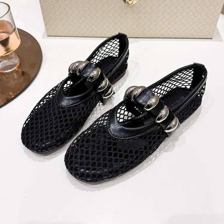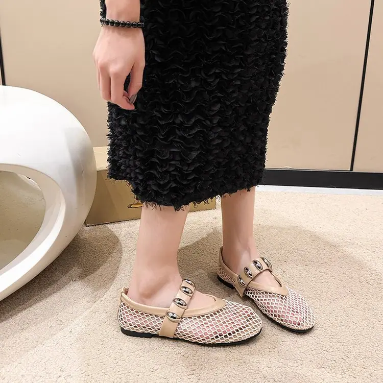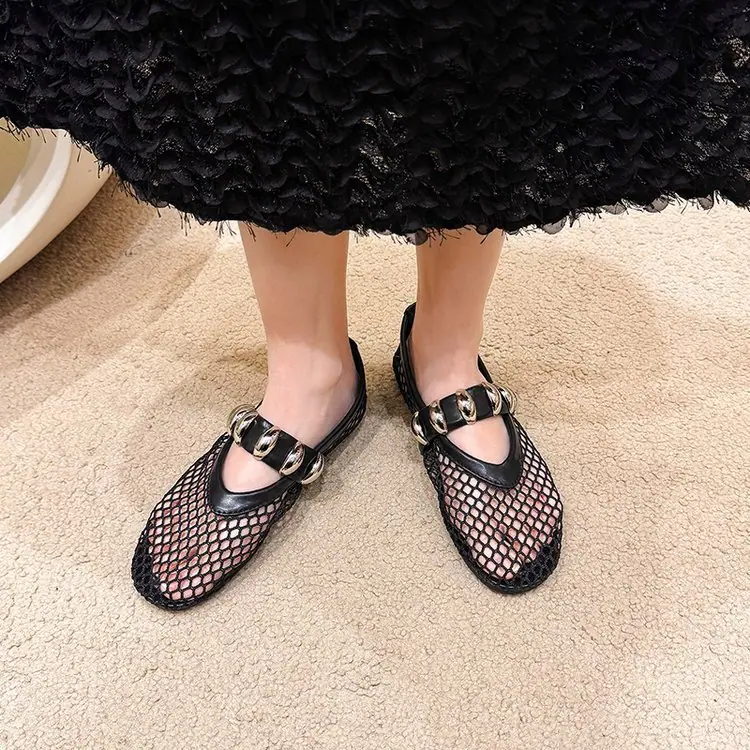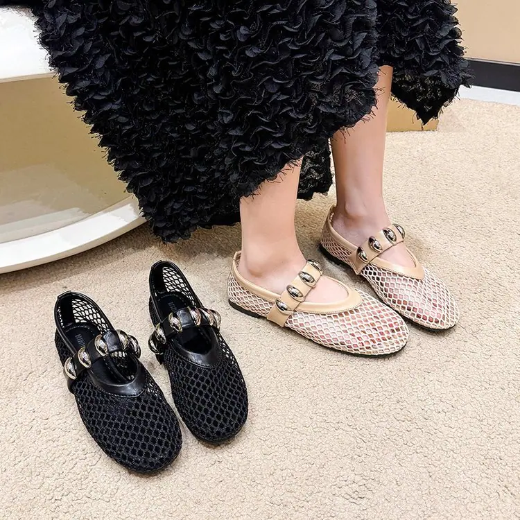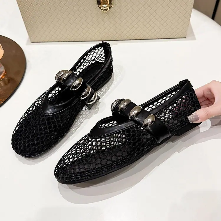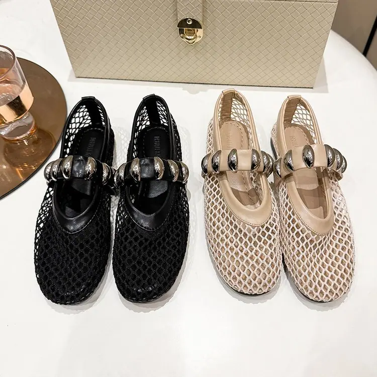 Sapatos Rasteirinhas de Verão Sapatos Femininos Sapatos Vazados Tamanho Grande Comércio Exterior Transfronteiriço Pé Slip-on Malha Sapatos de Época