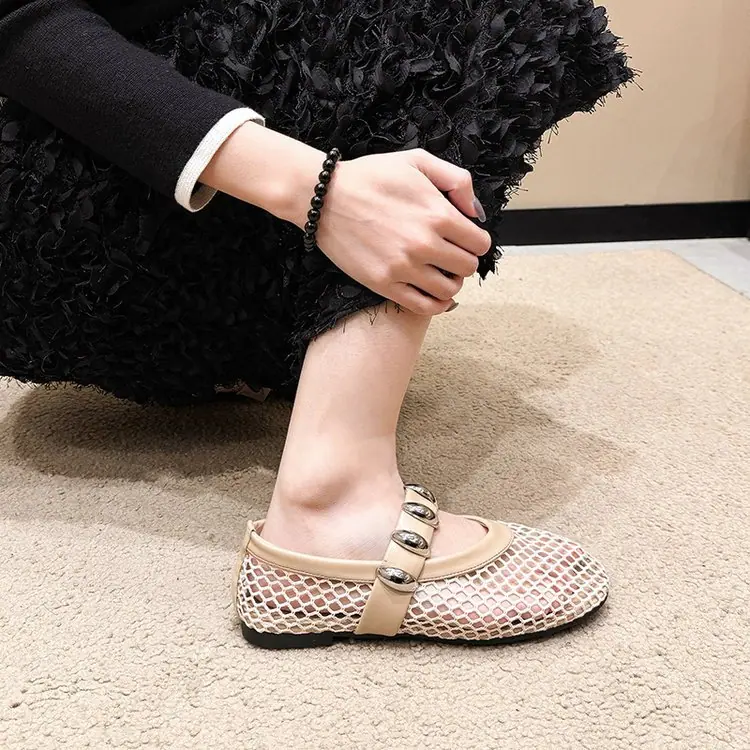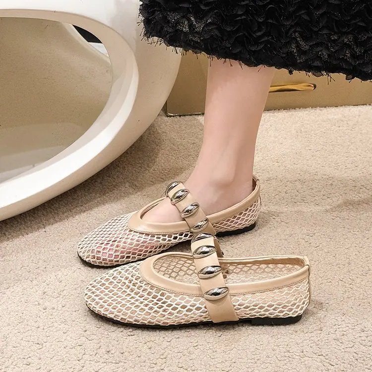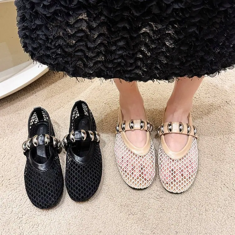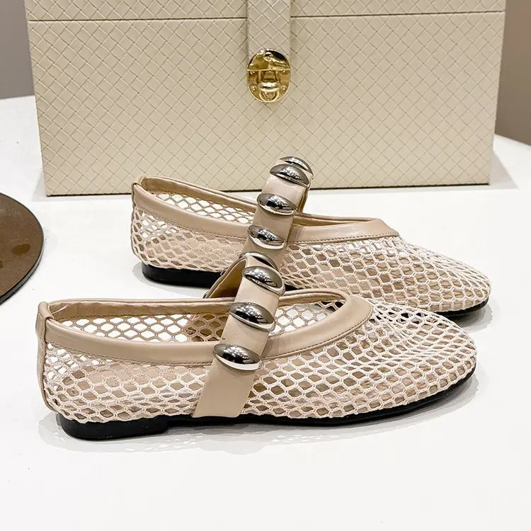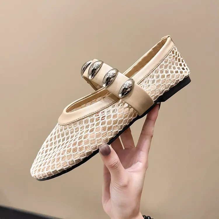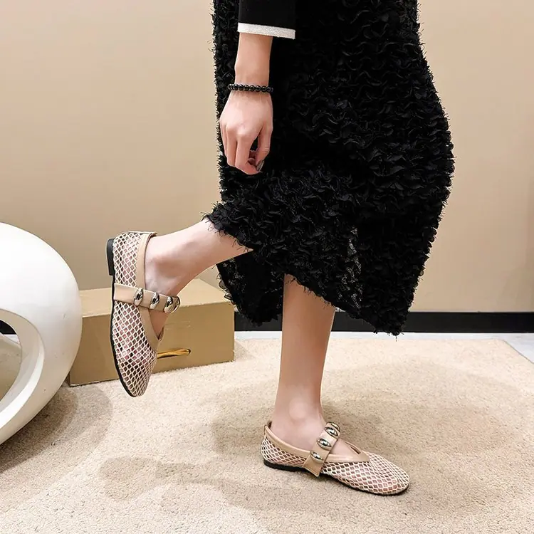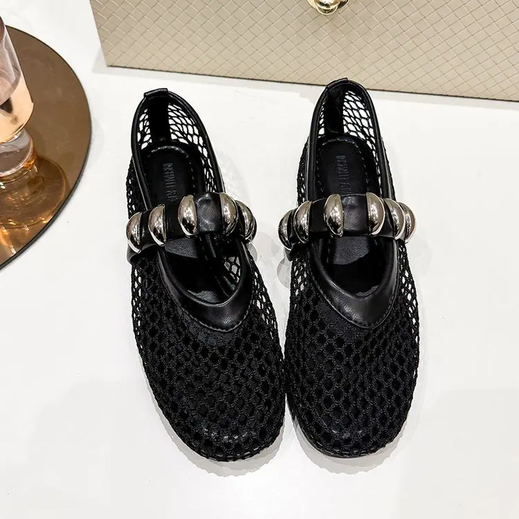 Sapatos Rasteirinhas de Verão Sapatos Femininos Sapatos Vazados Tamanho Grande Comércio Exterior Transfronteiriço Pé Slip-on Malha Sapatos de Época