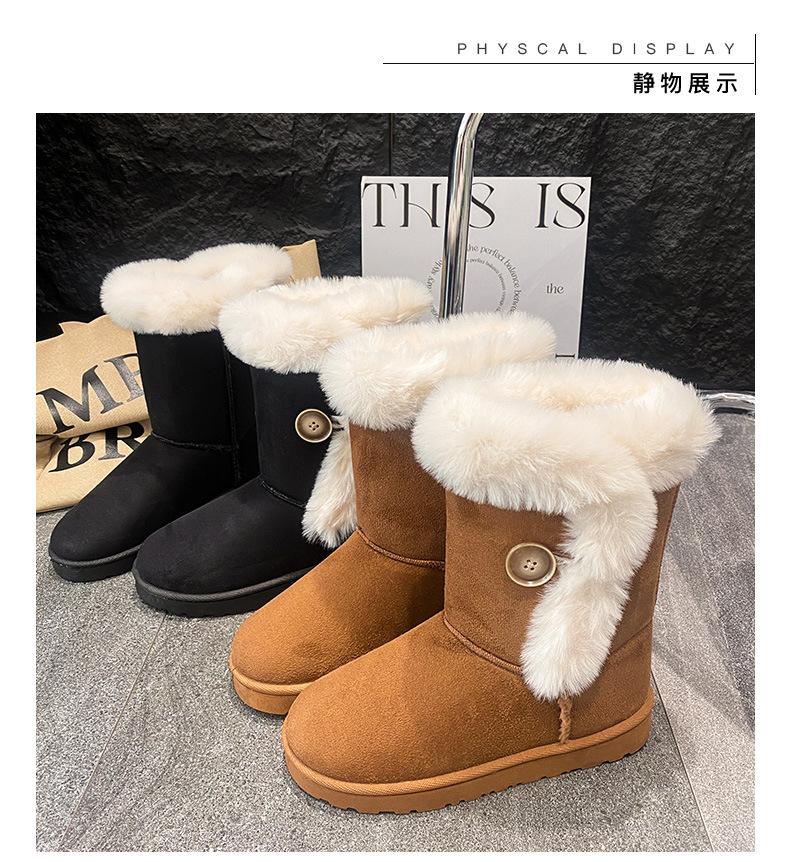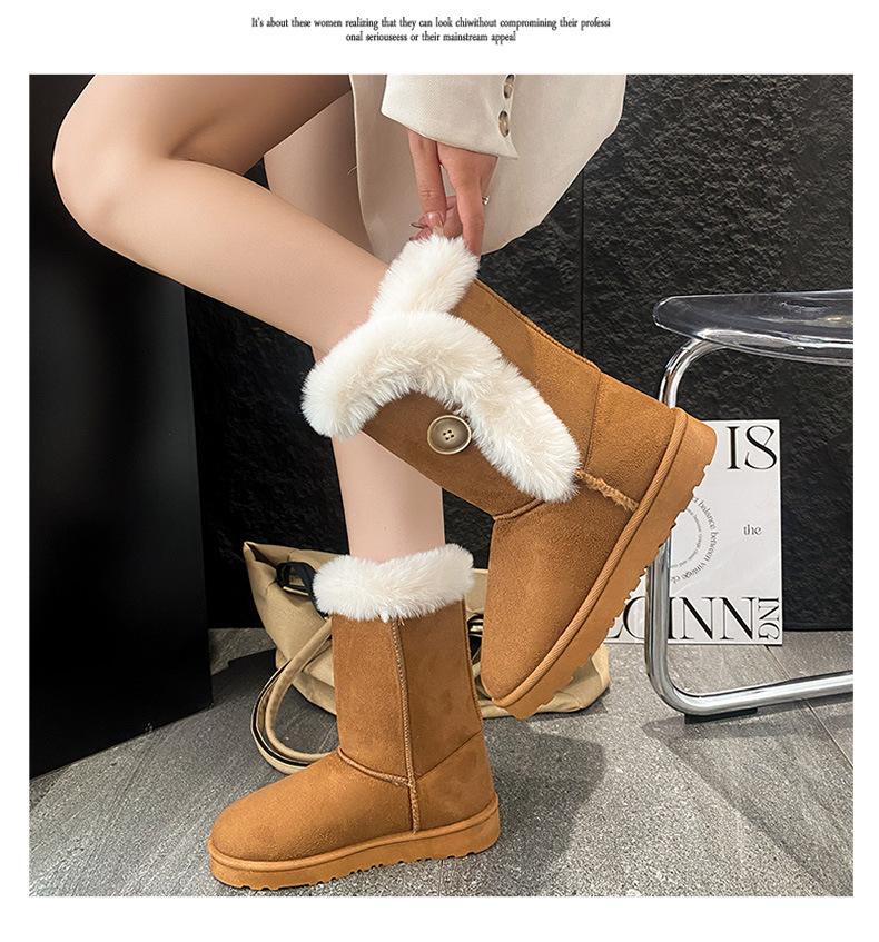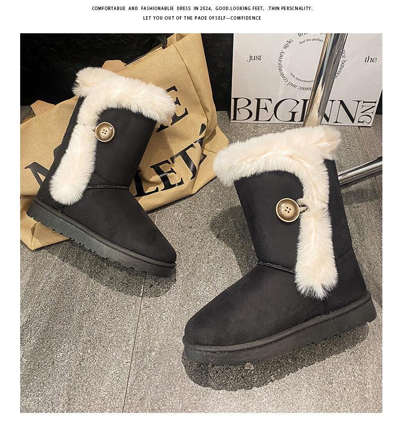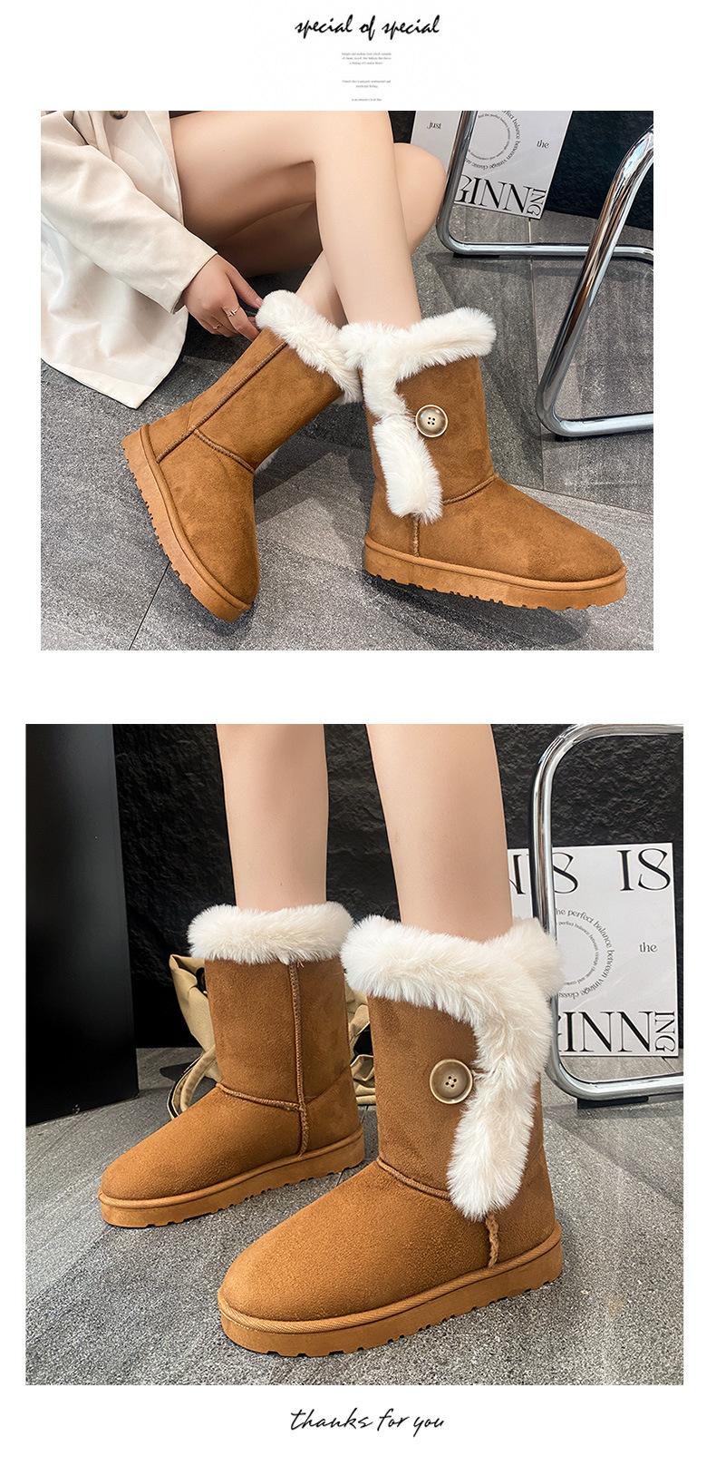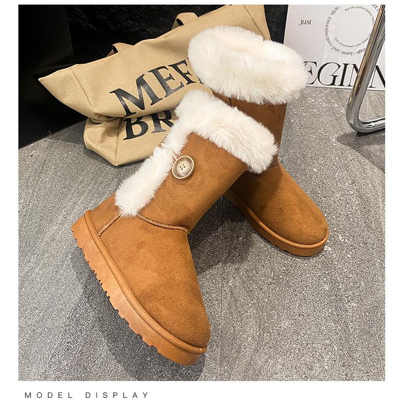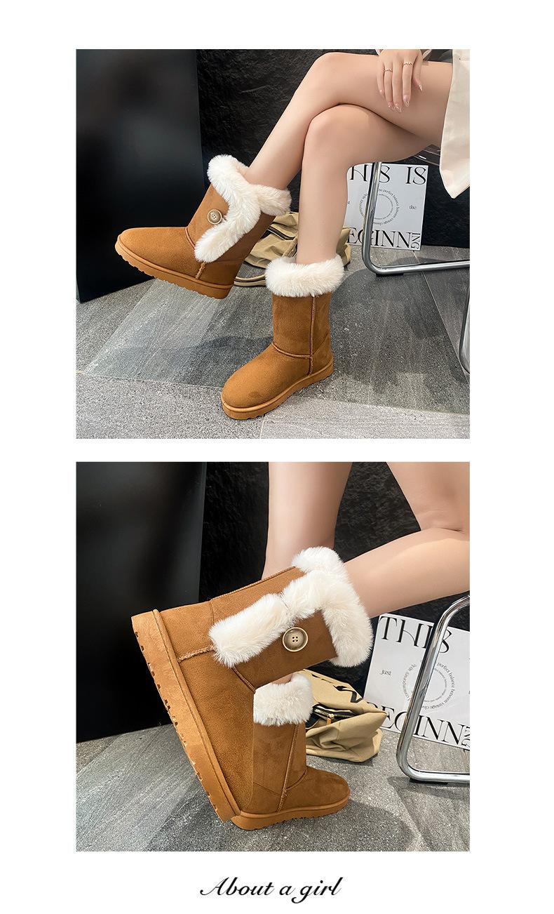 Amazon Quentes Casuais Flat Transfronteiriças Botas de Cano Médio Mulheres 2024 Inverno Tamanho Plus Forradas com Lã Espessas Comércio Exterior Botas de Neve