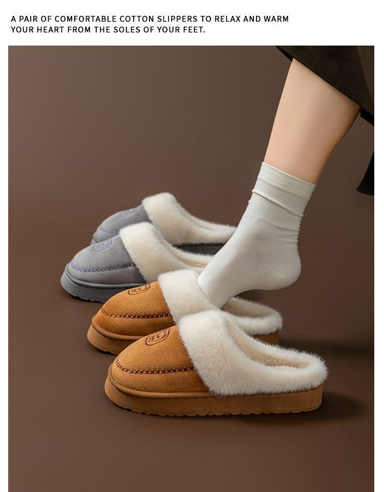 Compre Chinelo de Algodão Casa Outono e Inverno Antiderrapante Pelo Sintético Sapatos de Confinamento Casa Interior Forrado com Lã Espessado Quente Chinelos de Algodão Masculinos e Femininos no atacado no Joom.pro