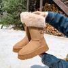 Botas de Neve Peludas Quentes e Espessas 2025 Inverno Plataforma Sola Grossa Bico Redondo Camurça à Prova de Frio Botas de Cano Médio para Mulheres Tamanho Grande 42