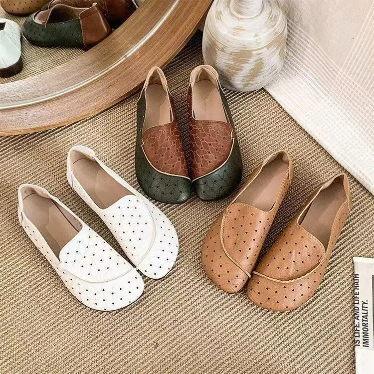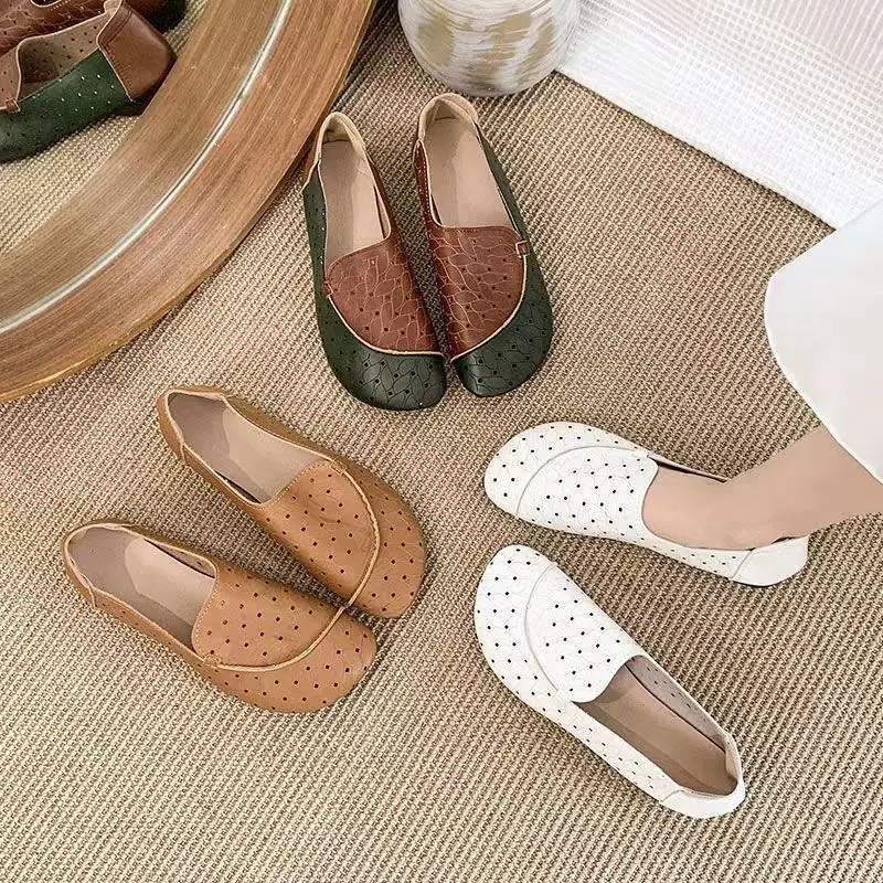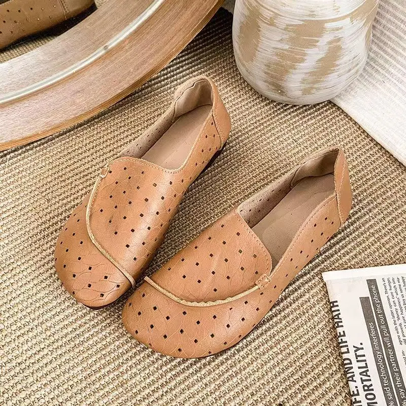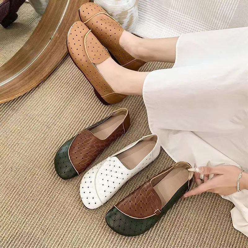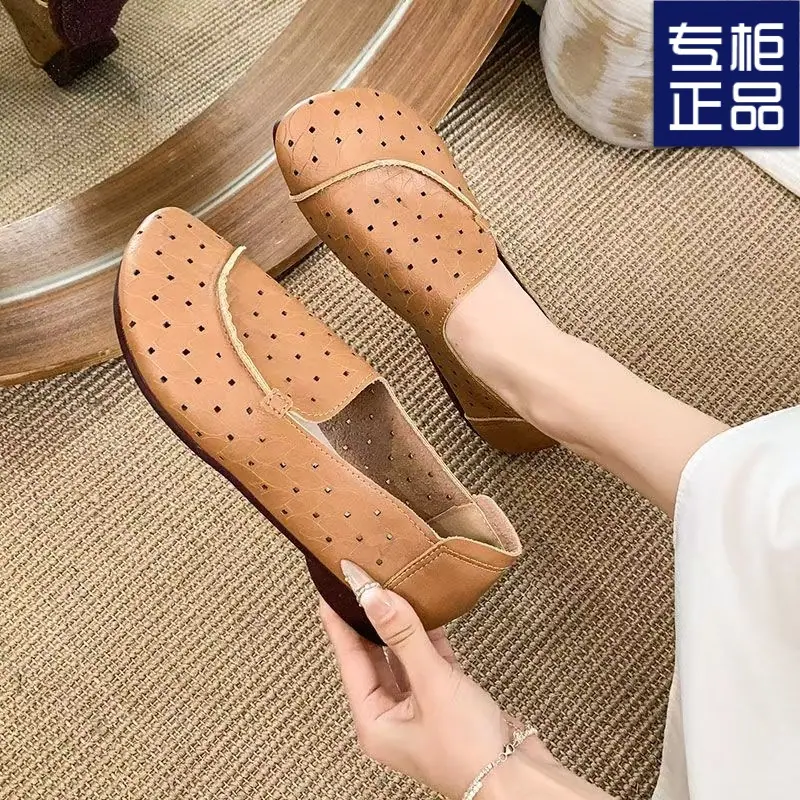 Sapatos únicos femininos de meia-idade e idosas, sola macia, sapatos de mãe, sapatos únicos 2025 verão novos antiderrapantes femininos, sapatos vazados respiráveis com furos