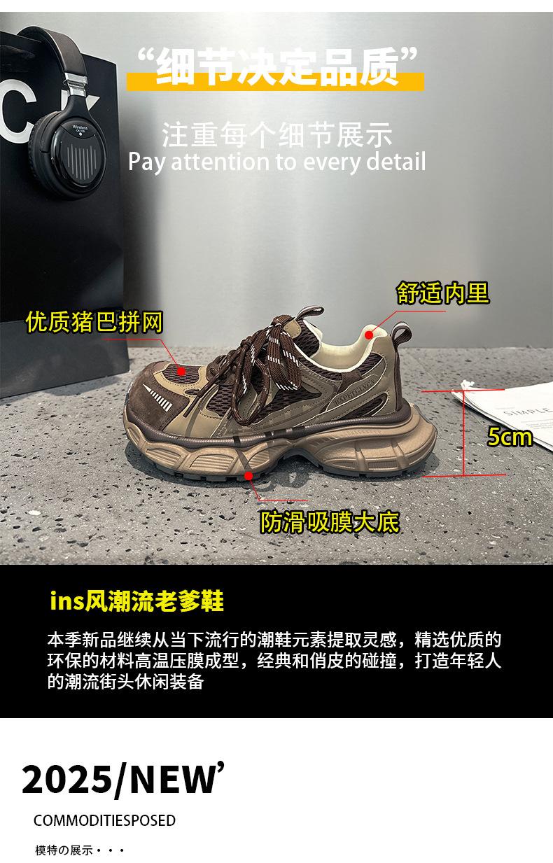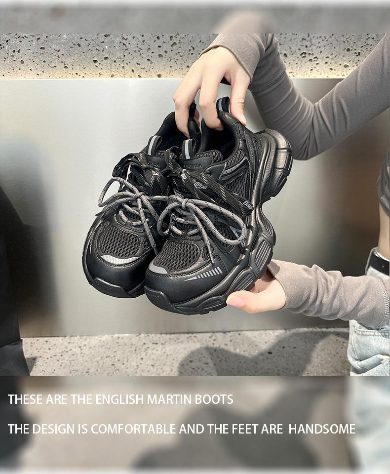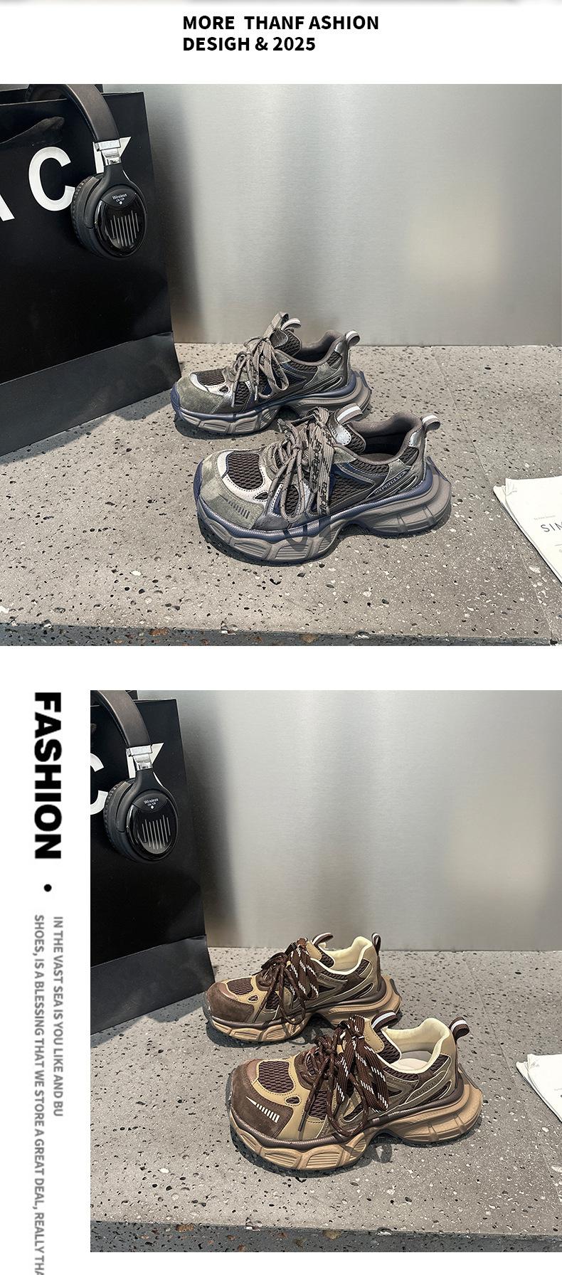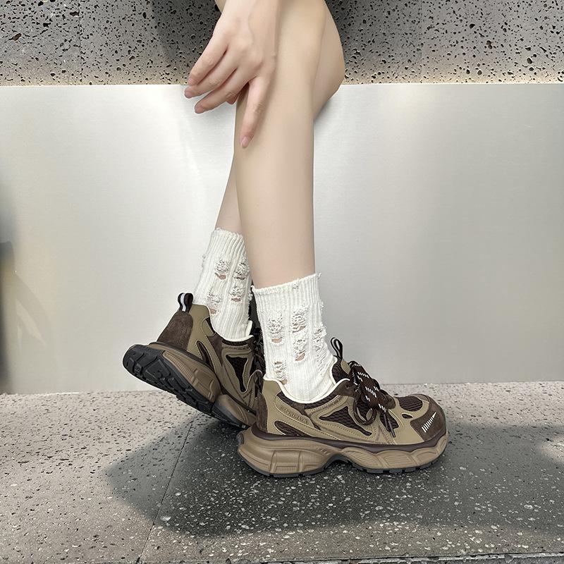 Tênis Femininos de Solado Grosso em Mesh Dad Shoes 2025 Outono Estação Europeia Novos Respiráveis Casuais Nicho Retrô