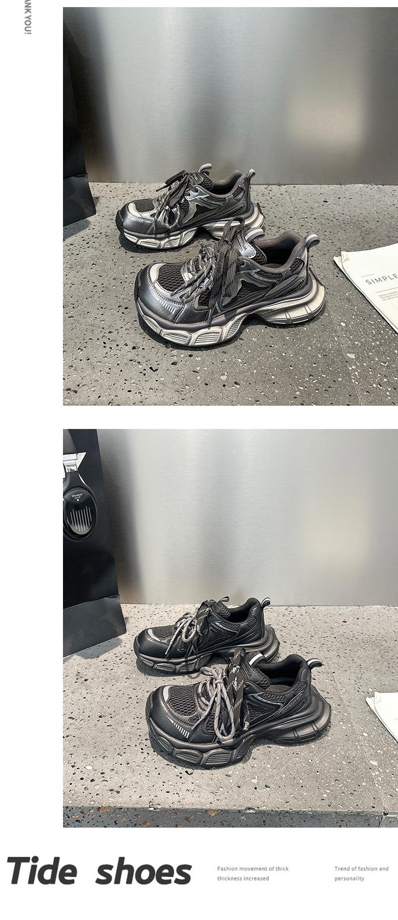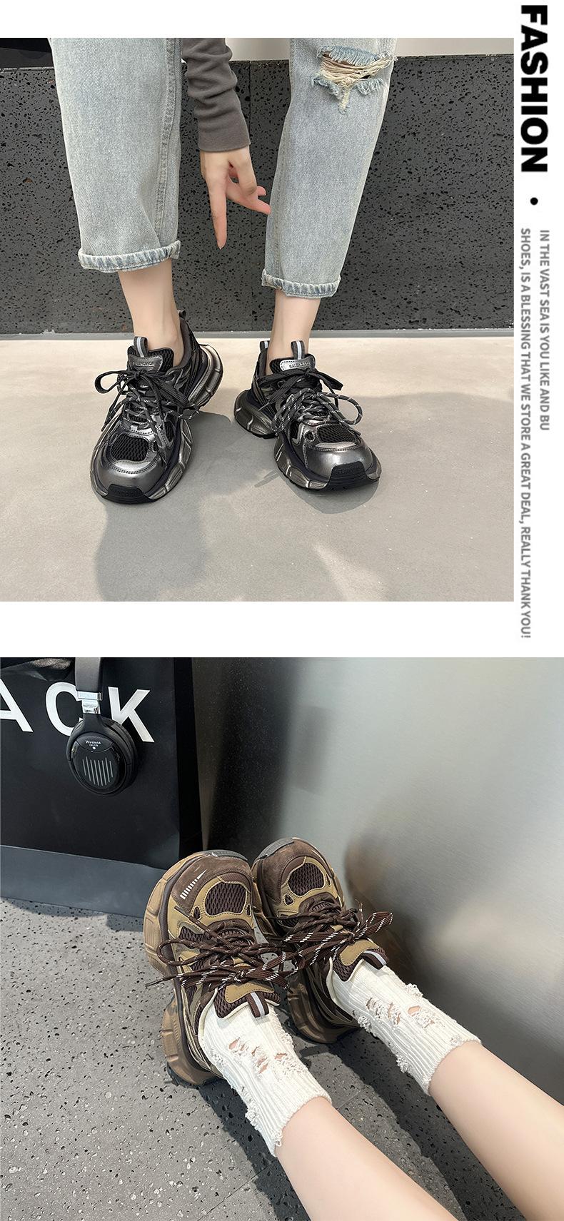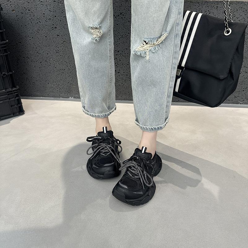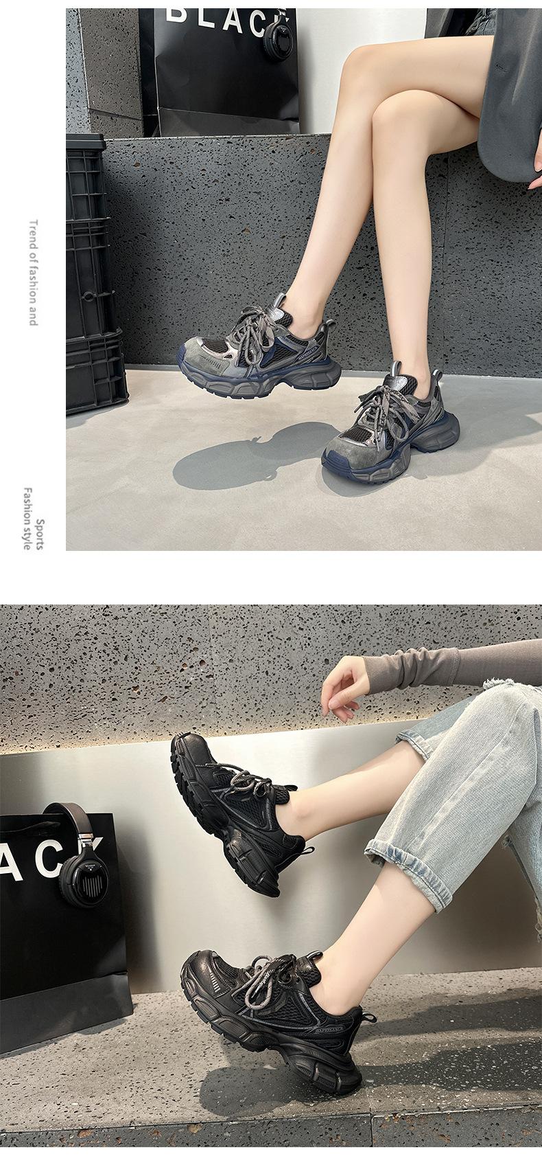 Tênis Femininos de Solado Grosso em Mesh Dad Shoes 2025 Outono Estação Europeia Novos Respiráveis Casuais Nicho Retrô