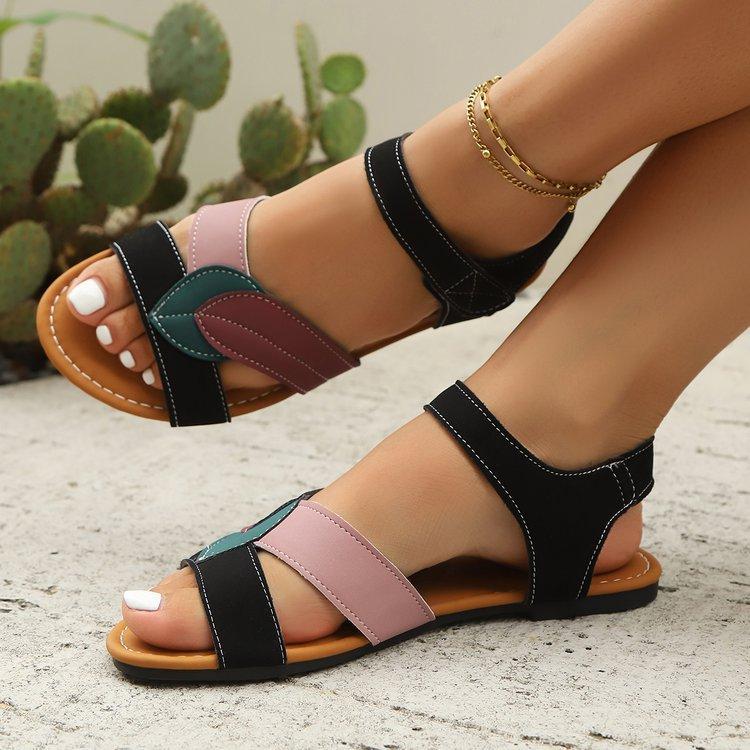 2025 Novo Estilo Transfronteiriço Comércio Exterior Tamanho Grande Sandálias Rasteirinhas de Velcro Femininas TEMU Fabricante Atacado Dropshipping