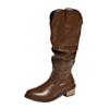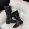 Botas de Cavaleiro Plissadas de Inverno 2025 Femininas Boca em V Vintage de Puxar Empilhadas Comércio Exterior Transfronteiriço Tamanho Plus Botas Longas Atacado