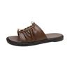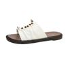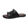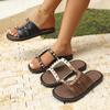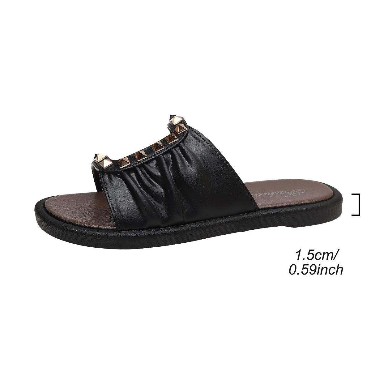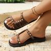 Verão Transfronteiriço Novo Estilo Bico Redondo Cor Sólida Tamanho Grande Moda Rebite Sandálias Femininas de Uma Tira com Sola Grossa