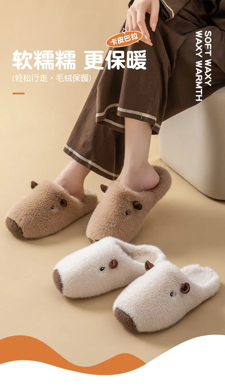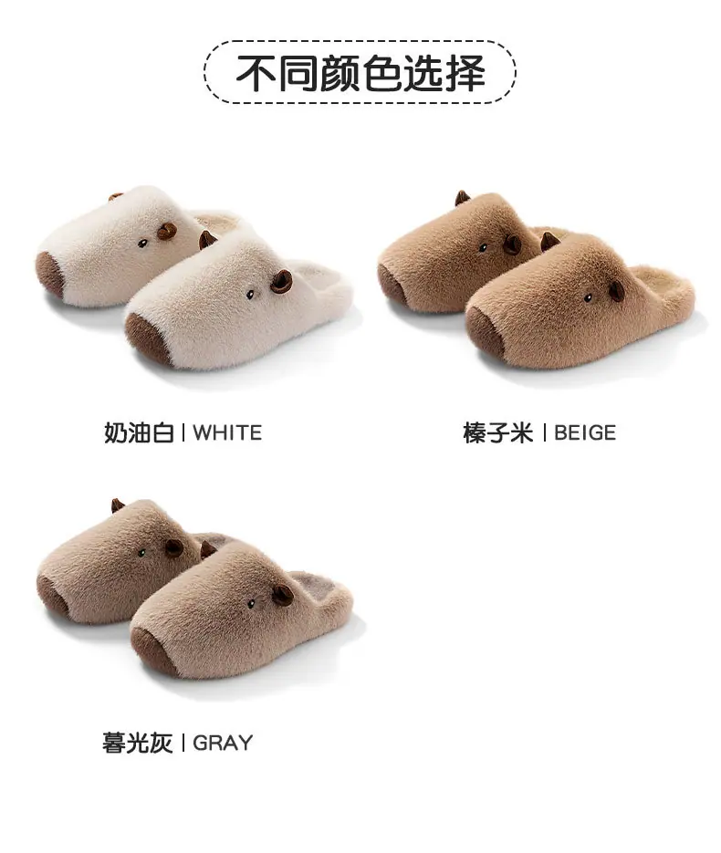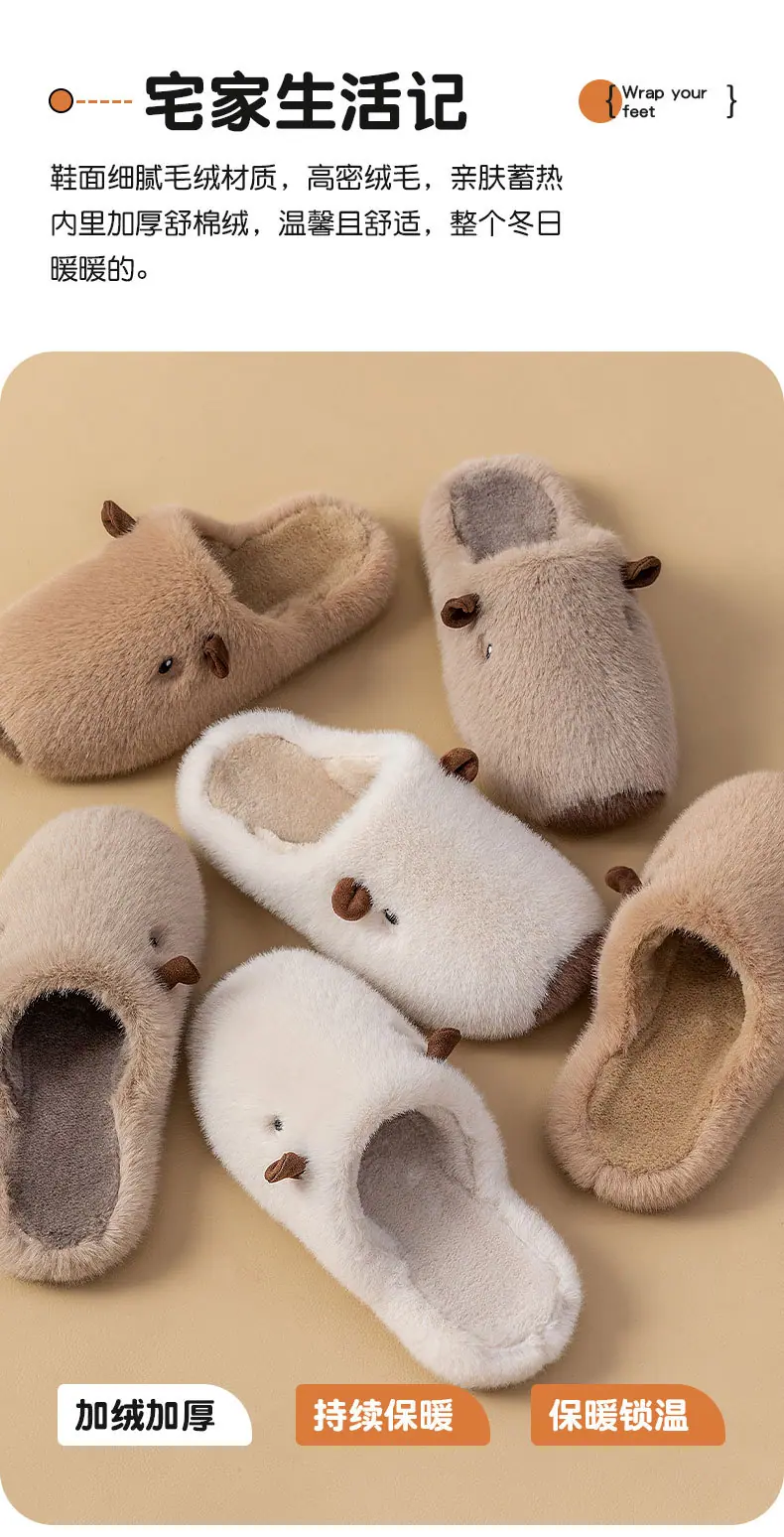 Pantufas de Algodão Femininas Outono Inverno 2025 Novas Indoor Casa Capivara Quentes Fofas Pelúcia Casal Pantufas de Algodão Masculinas