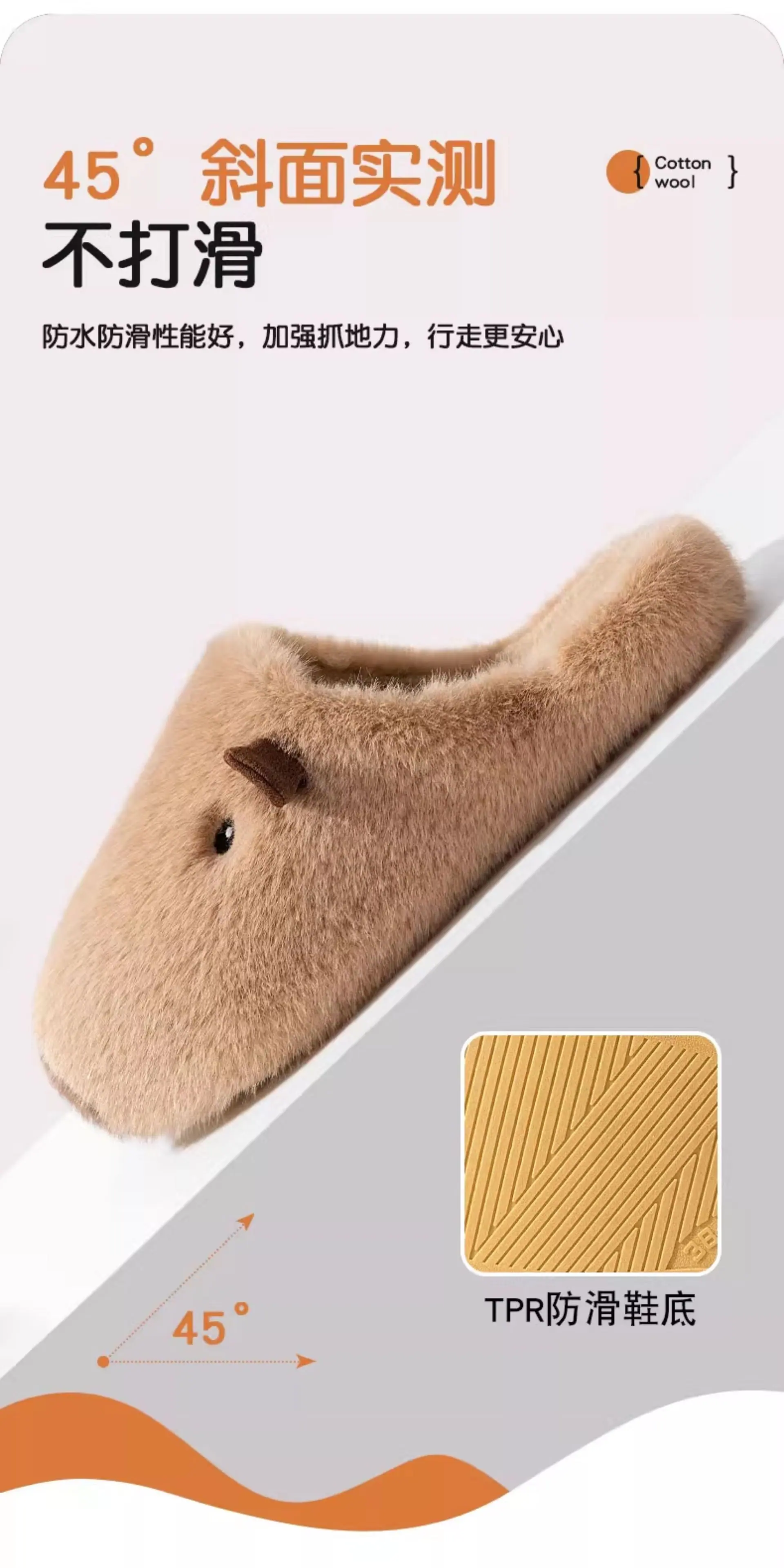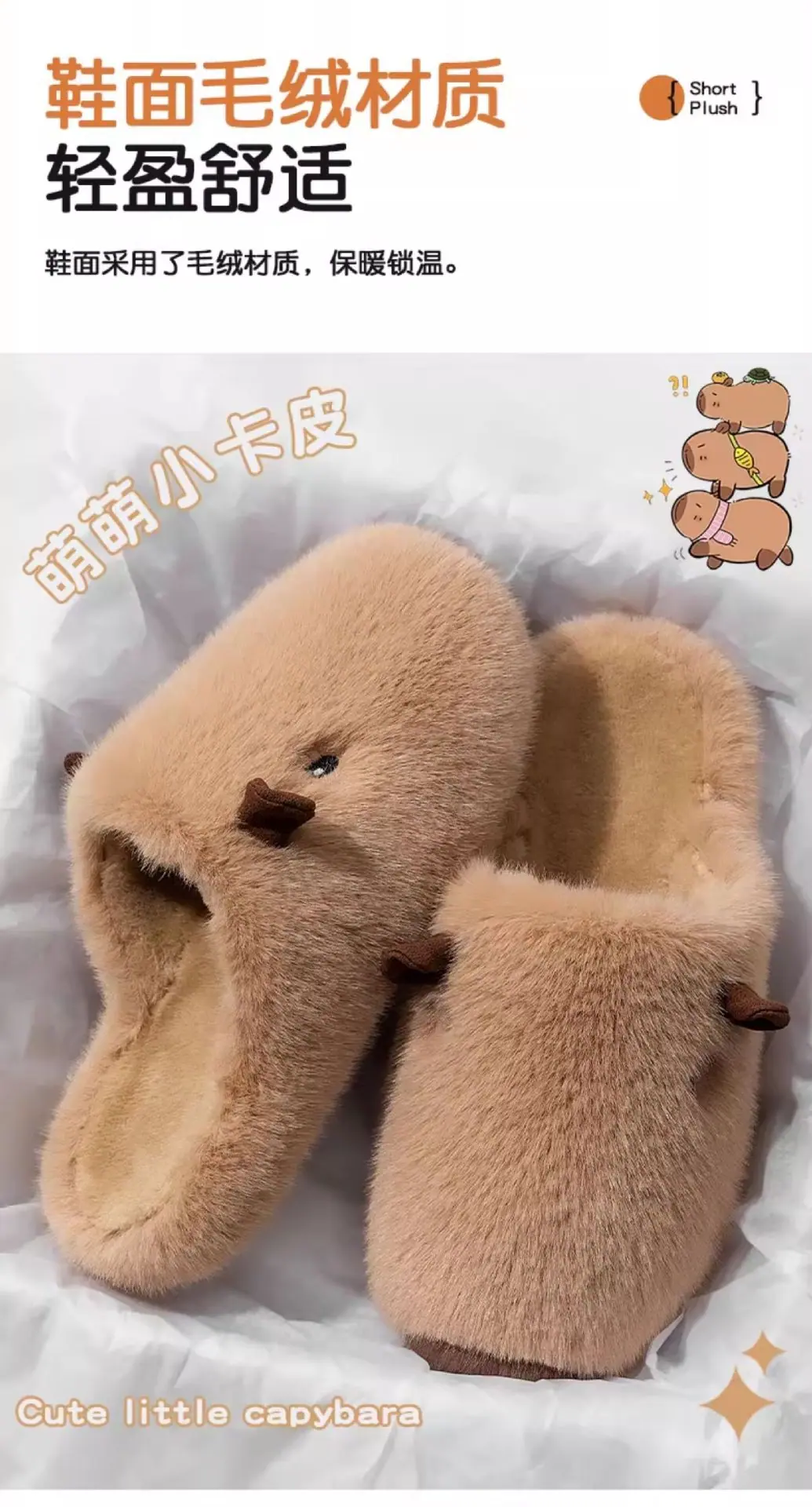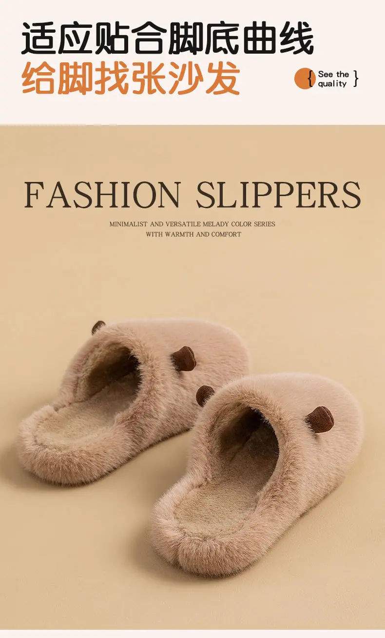 Pantufas de Algodão Femininas Outono Inverno 2025 Novas Indoor Casa Capivara Quentes Fofas Pelúcia Casal Pantufas de Algodão Masculinas