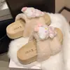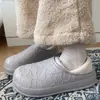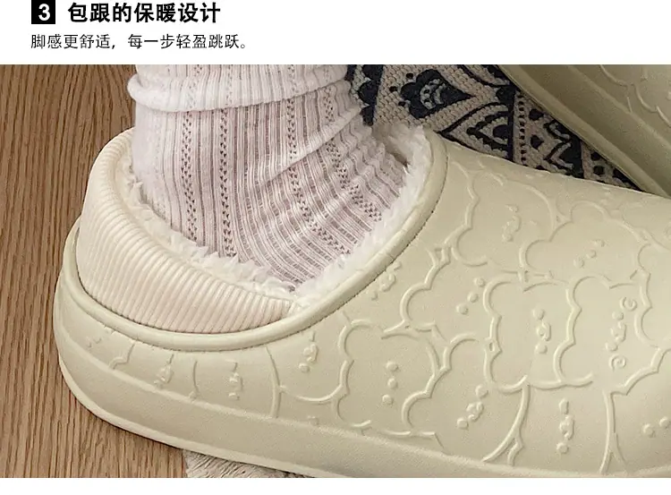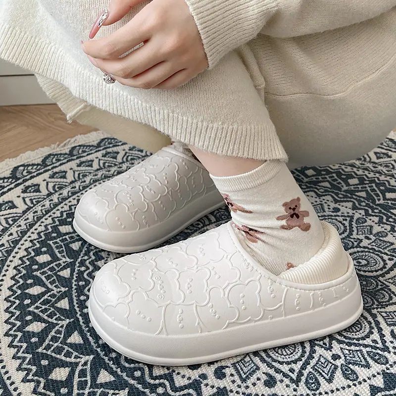 Outono e Inverno Chinelos de Algodão Fofos com Estampa de Urso para Casa Impermeáveis Chinelos de Algodão com Calcanhar Coberto Sapatos de Confinamento Antiderrapantes Sapatos de Algodão para Exterior