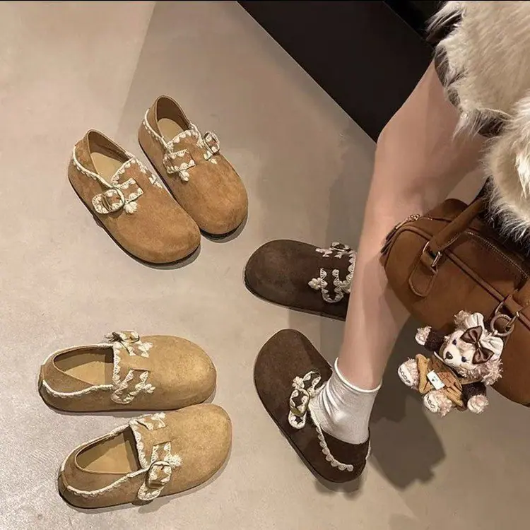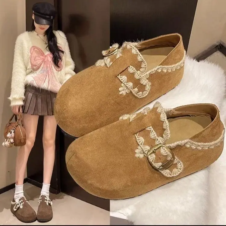 Sapatos Birkenstock Femininos de Plataforma Slip-on 2025 Outono Novo Aumento Interno de Altura Sapatos Solteiros Preguiçosos Mocassins Vintage de Amarrar