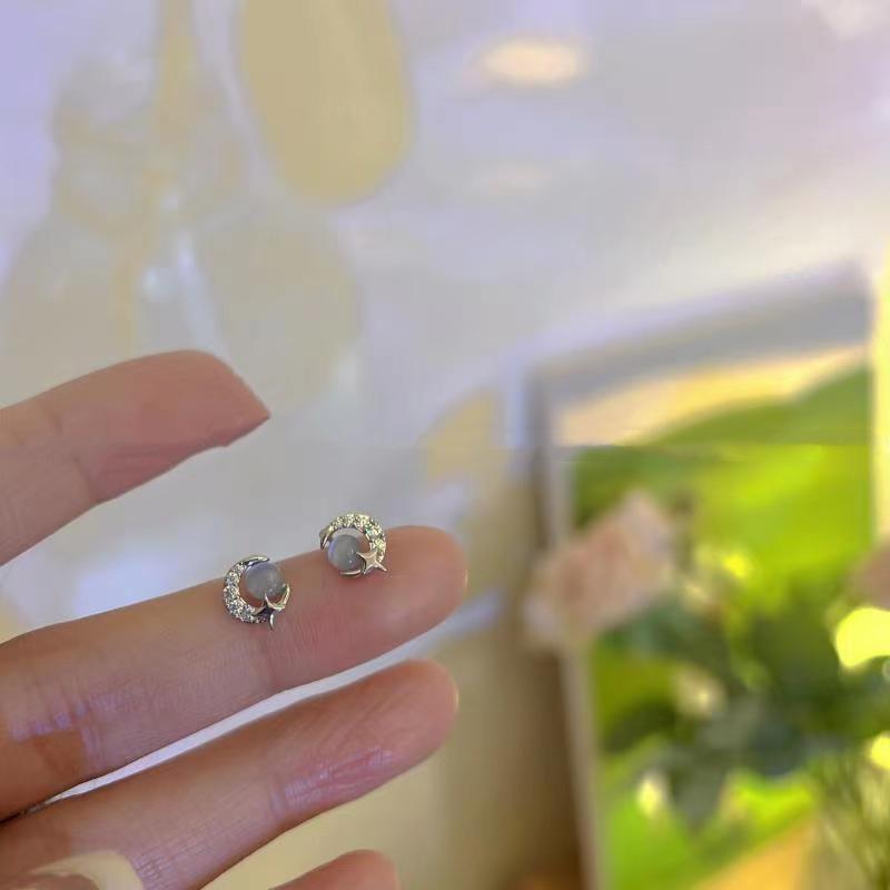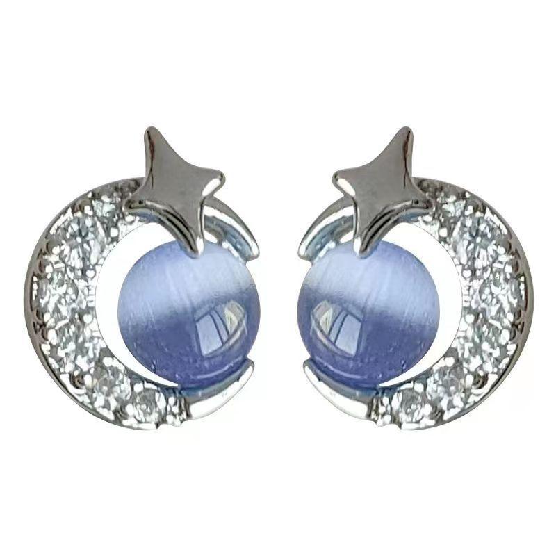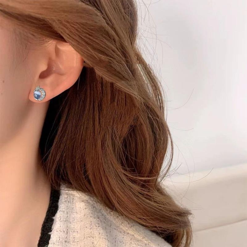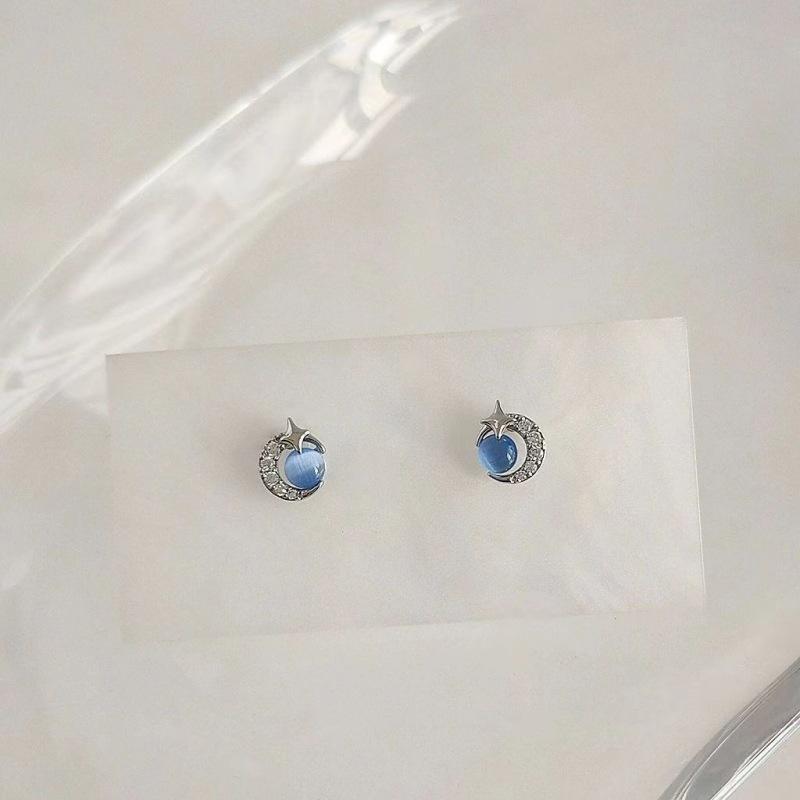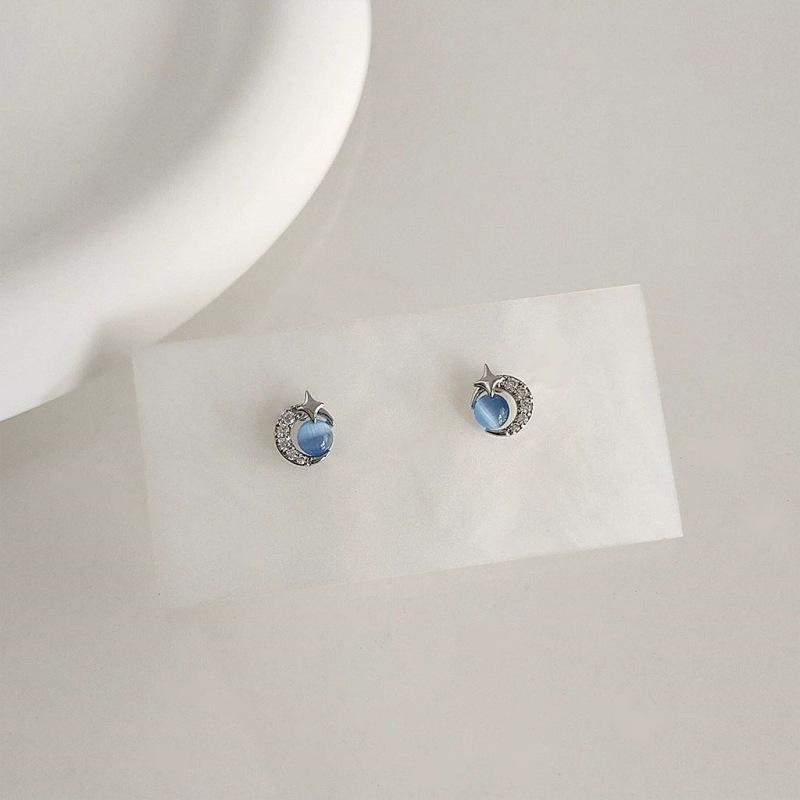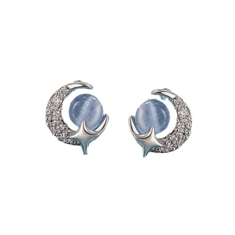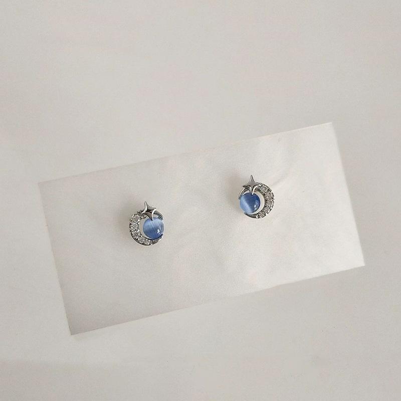 Compre Brincos de lua de estrela azul pequena feminina brincos de menina requintada versátil temperamento simples brincos populares nova moda no atacado no Joom.pro