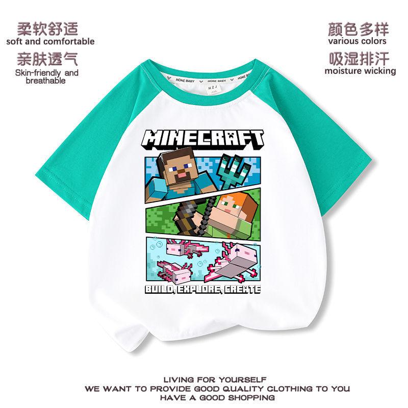 Roupa Periférica de Jogo Minecraft para Meninos Mais Velhos, Camiseta de Manga Curta de Verão Creeper