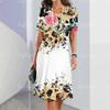 Vestido Feminino da Moda Gola Redonda Manga Curta Elegante Estampa Floral Vestido Verão Casual Solto