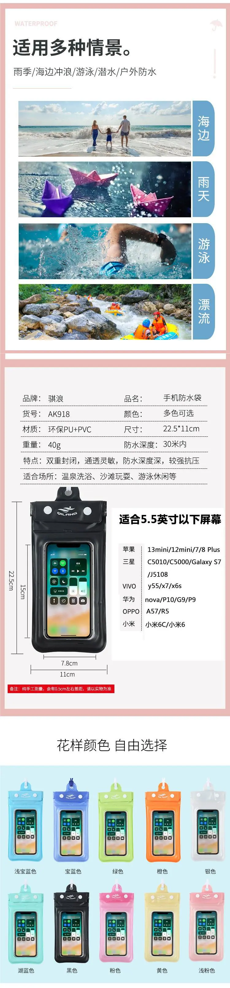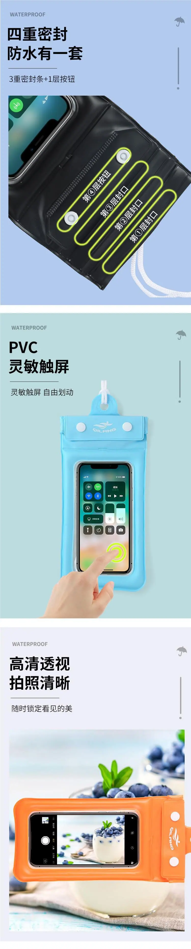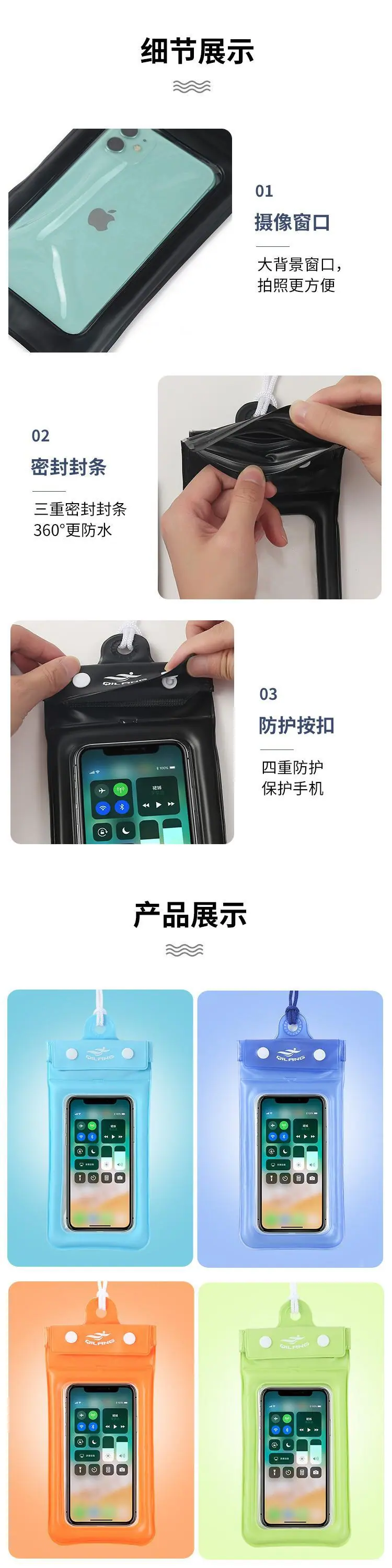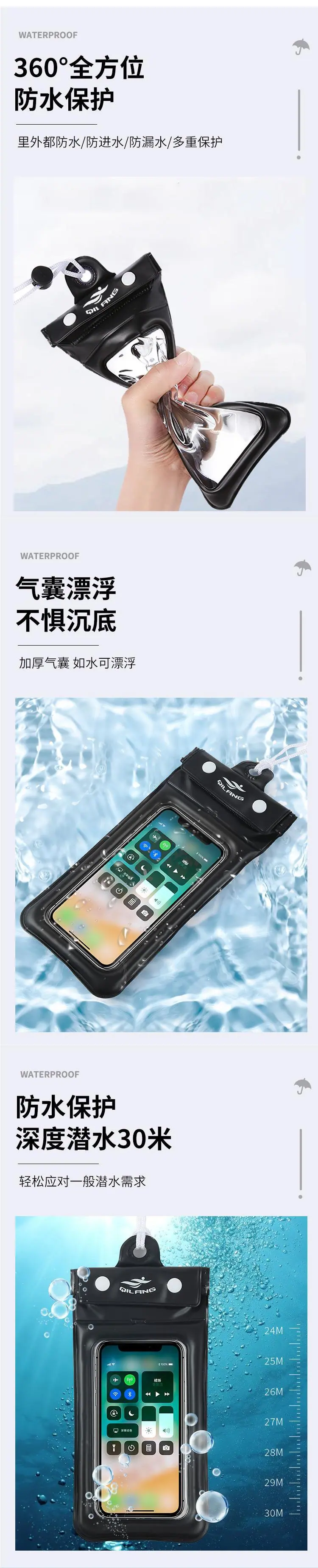 Tela Sensível ao Toque Esportes ao Ar Livre Selado em estoque Capa Impermeável para Celular Drifting Bolsa Impermeável para Celular Grande de Três Camadas Natação PVC