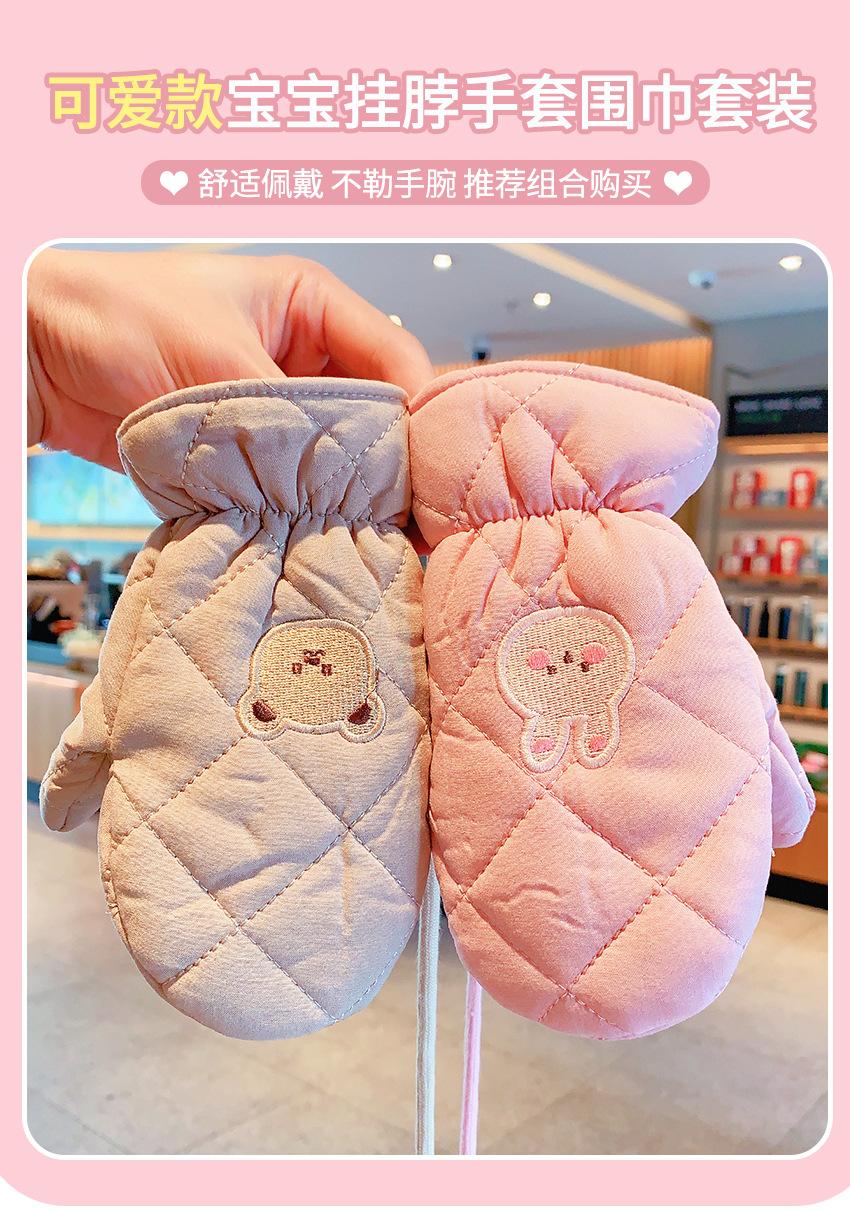2025 Infantil Coelho Urso Cereja Cruz Cachecol Aquecedor de Pescoço Conjunto de Luvas Outono Inverno Bebê Lã Forrada Quente Gola de Pescoço