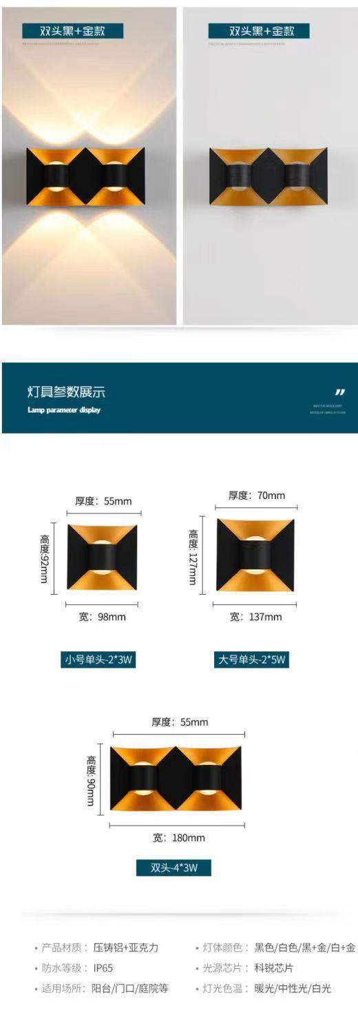 Arandela de parede externa à prova d'água led arandela de parede externa para porta externa lâmpada lavadora de parede de cabeça dupla para cima e para baixo lâmpada de iluminação lâmpada de parede de fundo