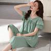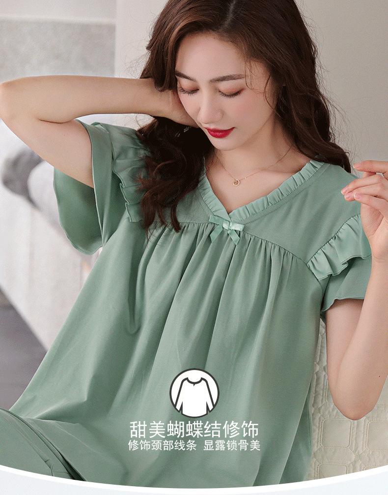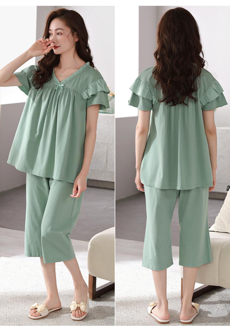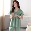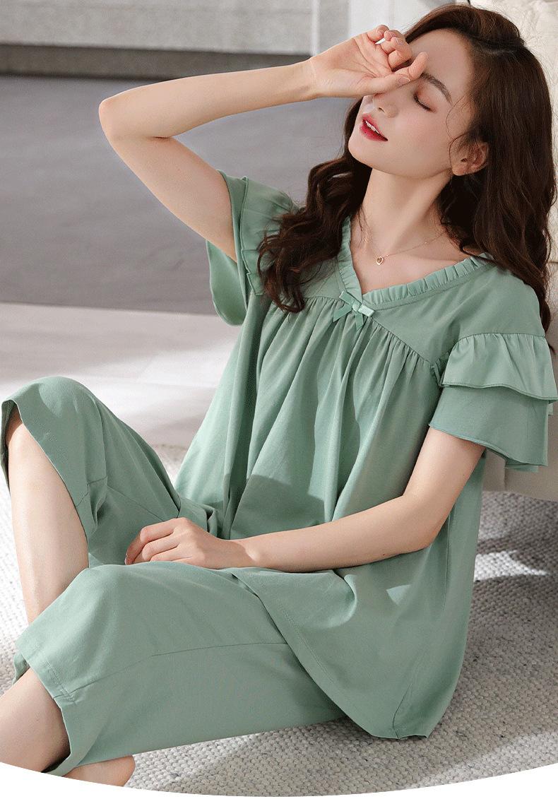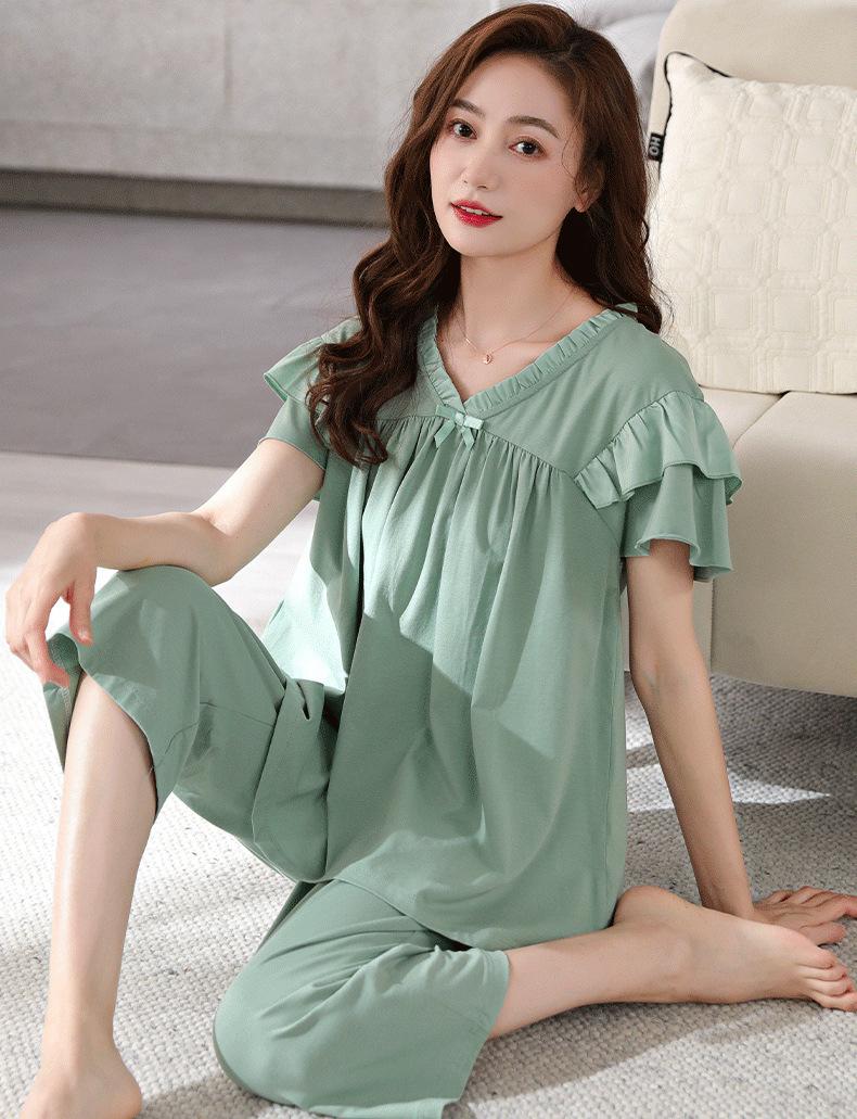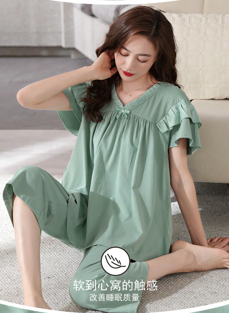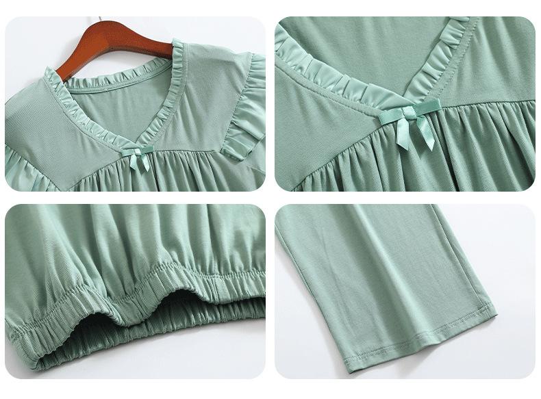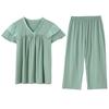 Pijama de Verão Feminina Modal Manga Curta Calça Capri Conjunto Verão Mãe Casual Solto Roupa de Exterior
