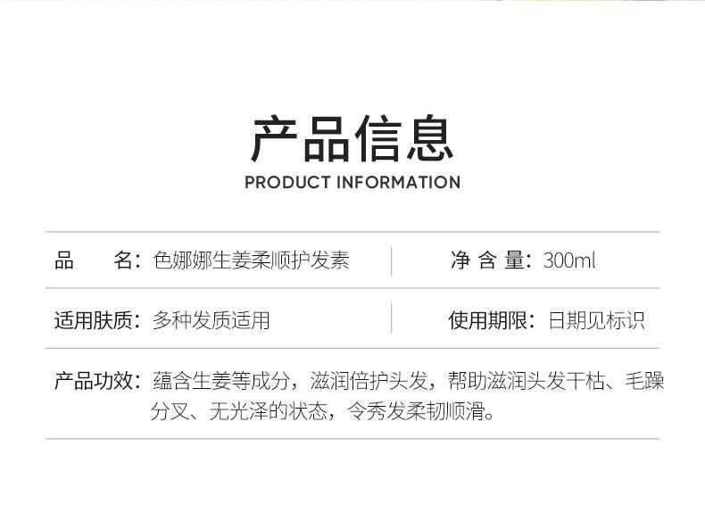 Se Nana Óleo de Gengibre Condicionador Hidratante Hidrata o Cabelo, Suaviza e Melhora o Frizz Condicionador Cuidados com o Cabelo