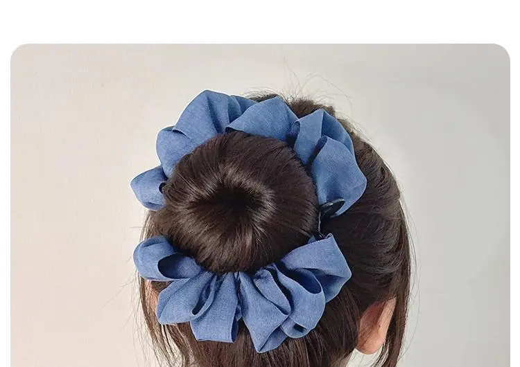 Atmospheric Blue Flower Scrunchie Bun【Brown Black】