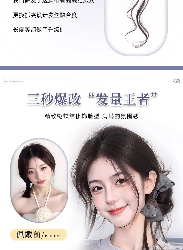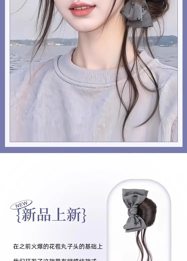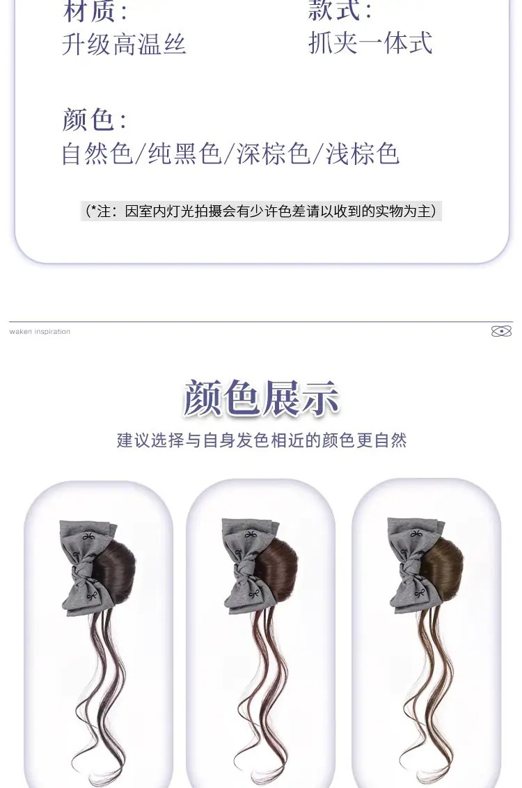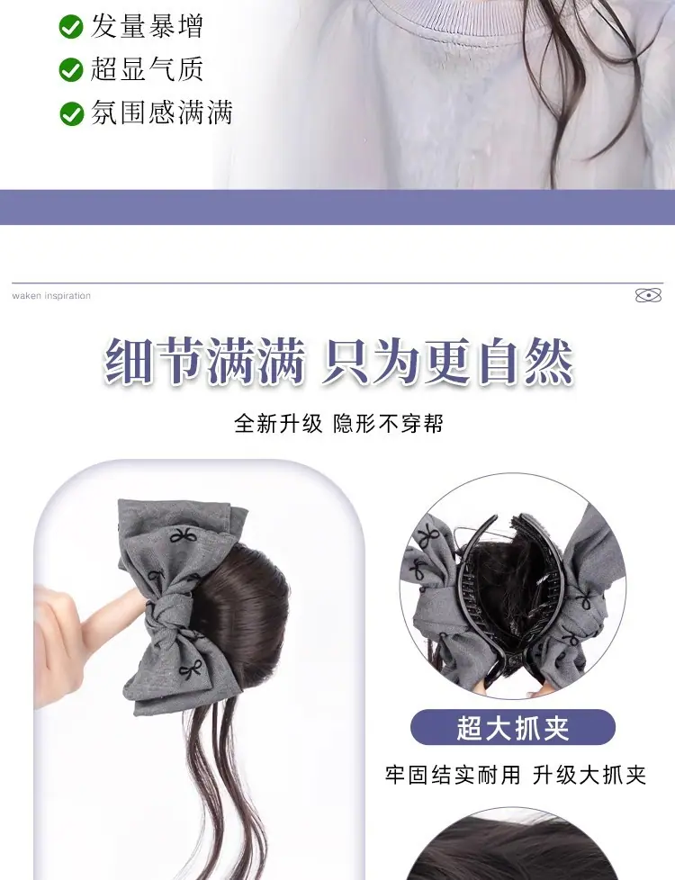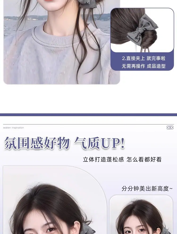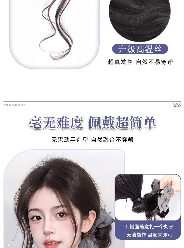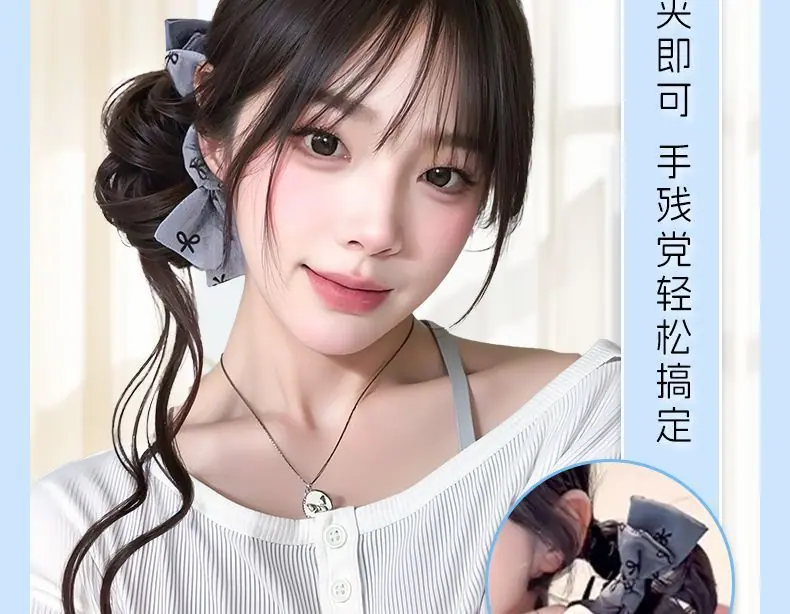 Peruca Coque com Presilha para Mulheres com um Laço Coque Rabo de Cavalo Baixo, Volume de Cabelo Lateral Fashion