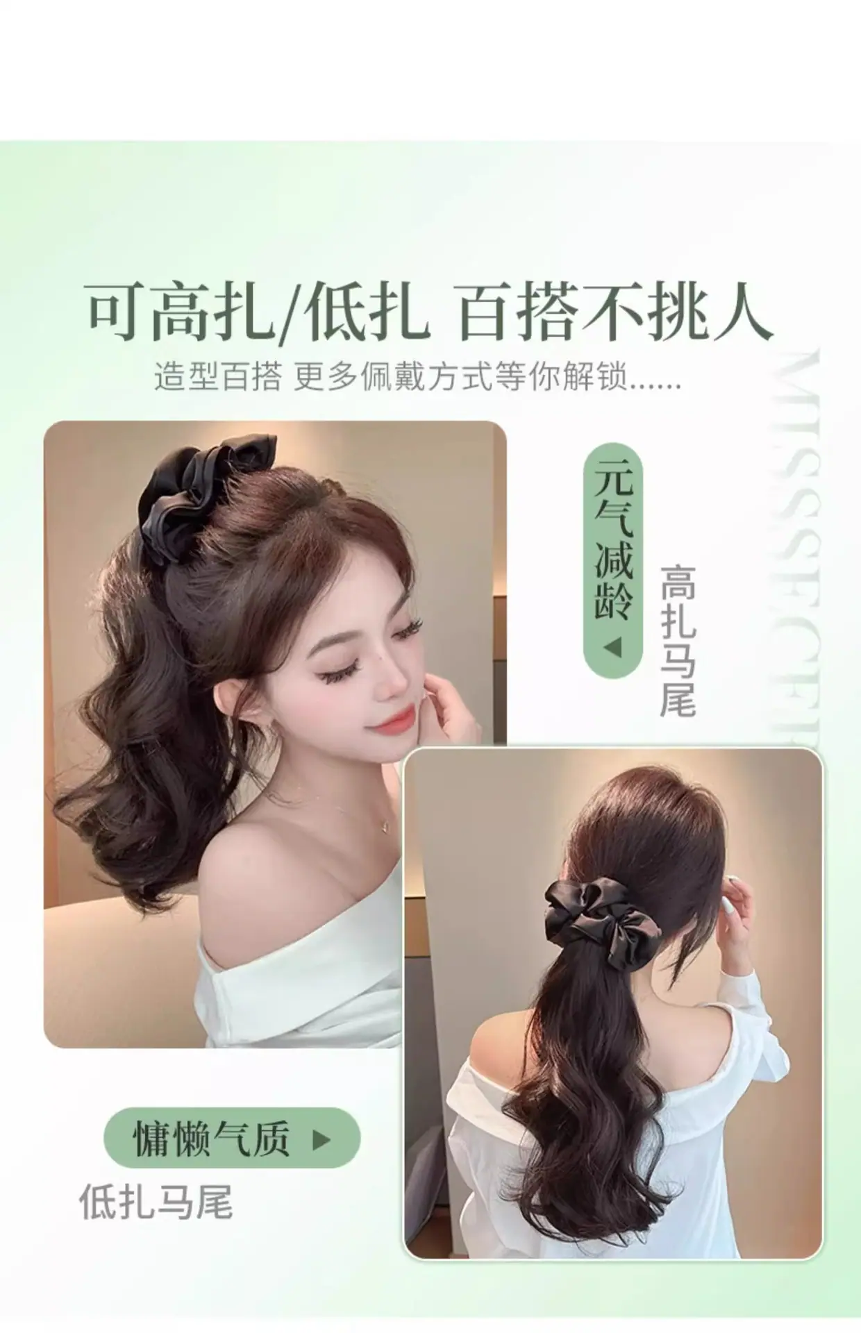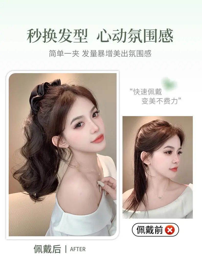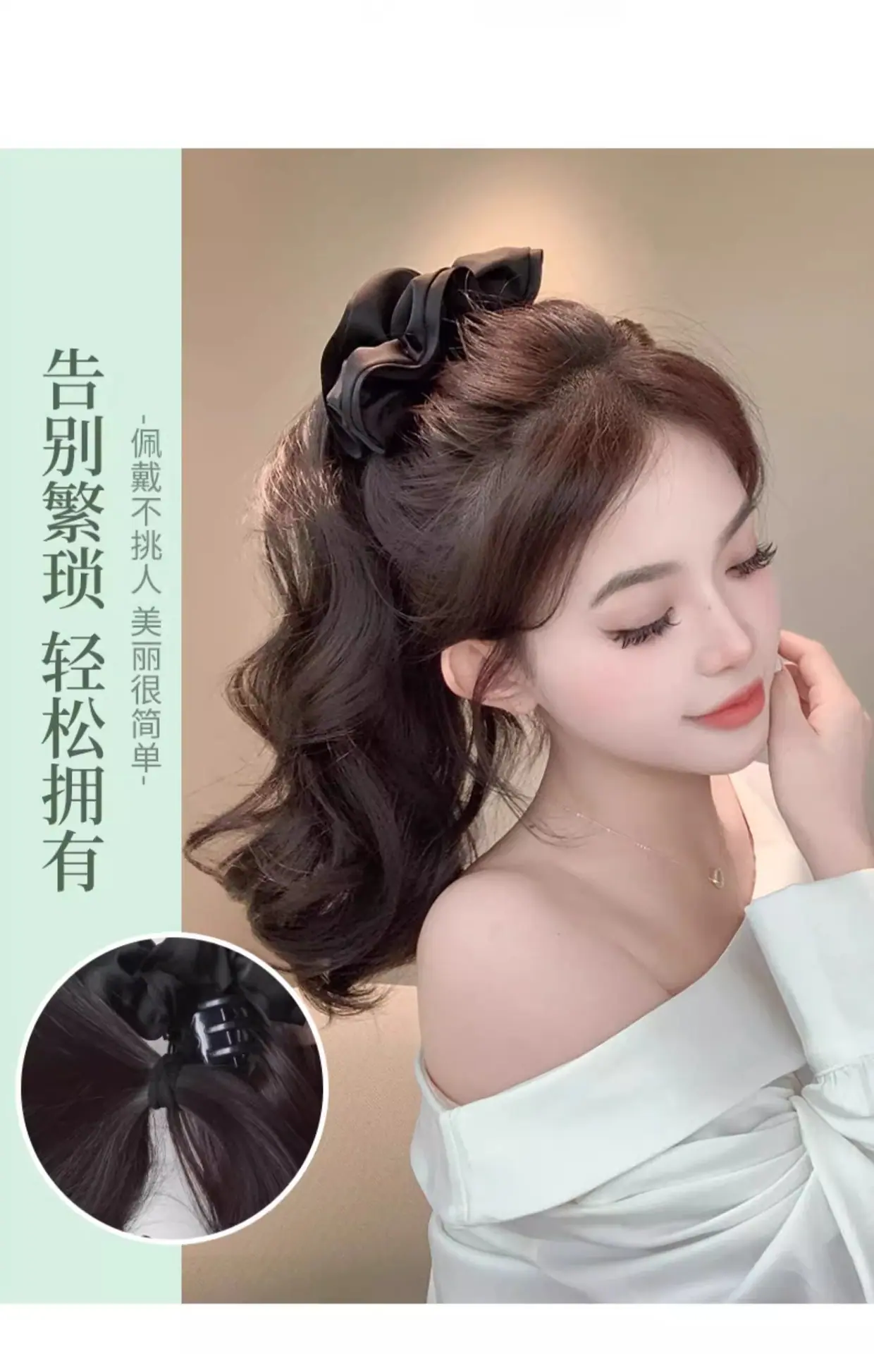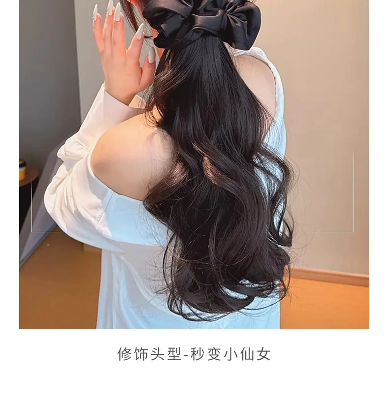 Peruca Rabo de Cavalo Grampo de Cabelo Faixa de Cabelo Feminina Estilo Coreano Preguiçoso Natural Fofo Onda Grande Cabelo Artificial Rabo de Cavalo Lateral Baixo