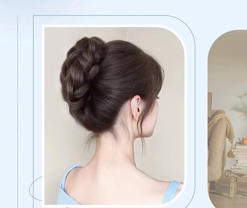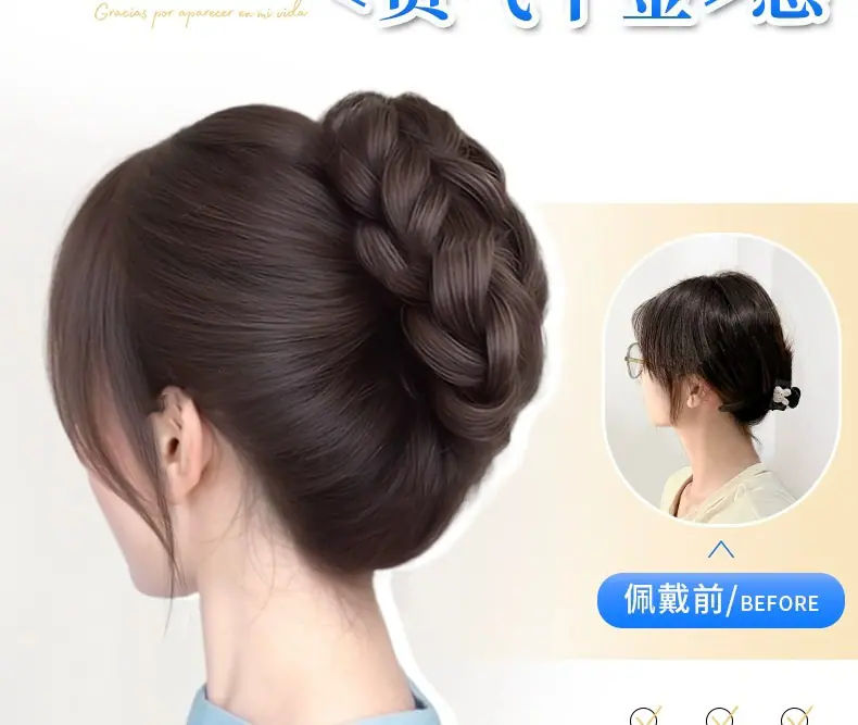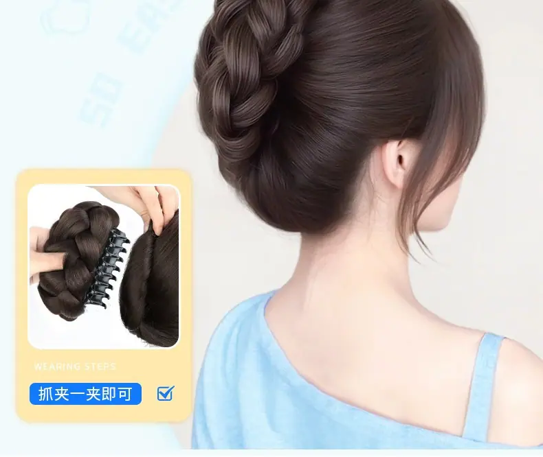 Rabo de Cavalo Baixo com Penas de Galinha Bola de Cabelo Feminino Cabelo Artificial Clipe Peruca Coque Cabelo Natural Fofo Peruca Bolsa