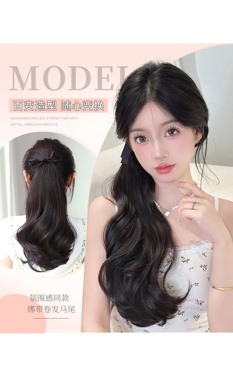 Peruca Rabo de Cavalo Mulheres Cabelo Longo Cacheado Amarrar Pêra Flor Rabo de Cavalo Falso Onda Grande Presilha Médio Longo Curto Peruca Trança