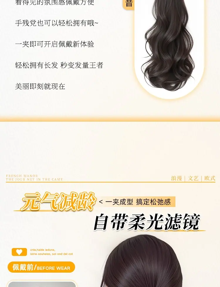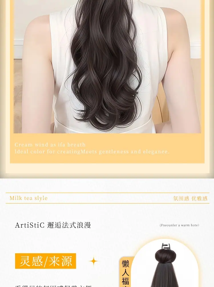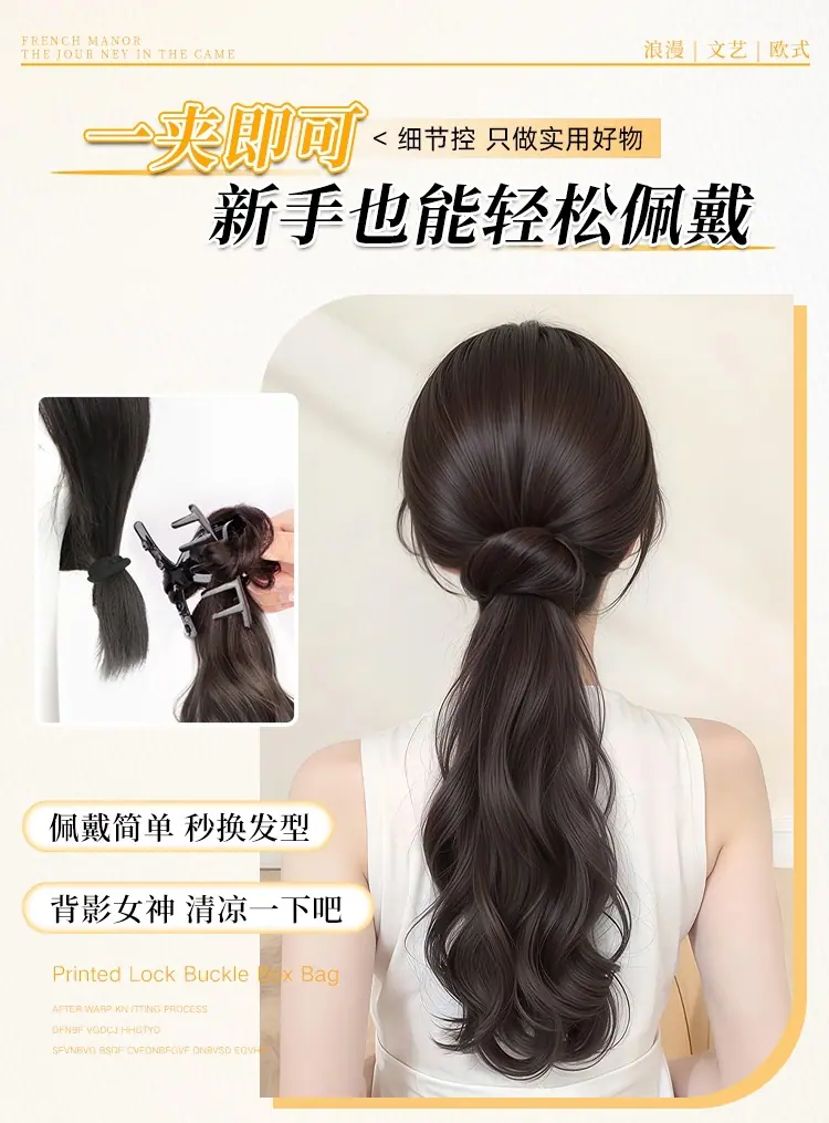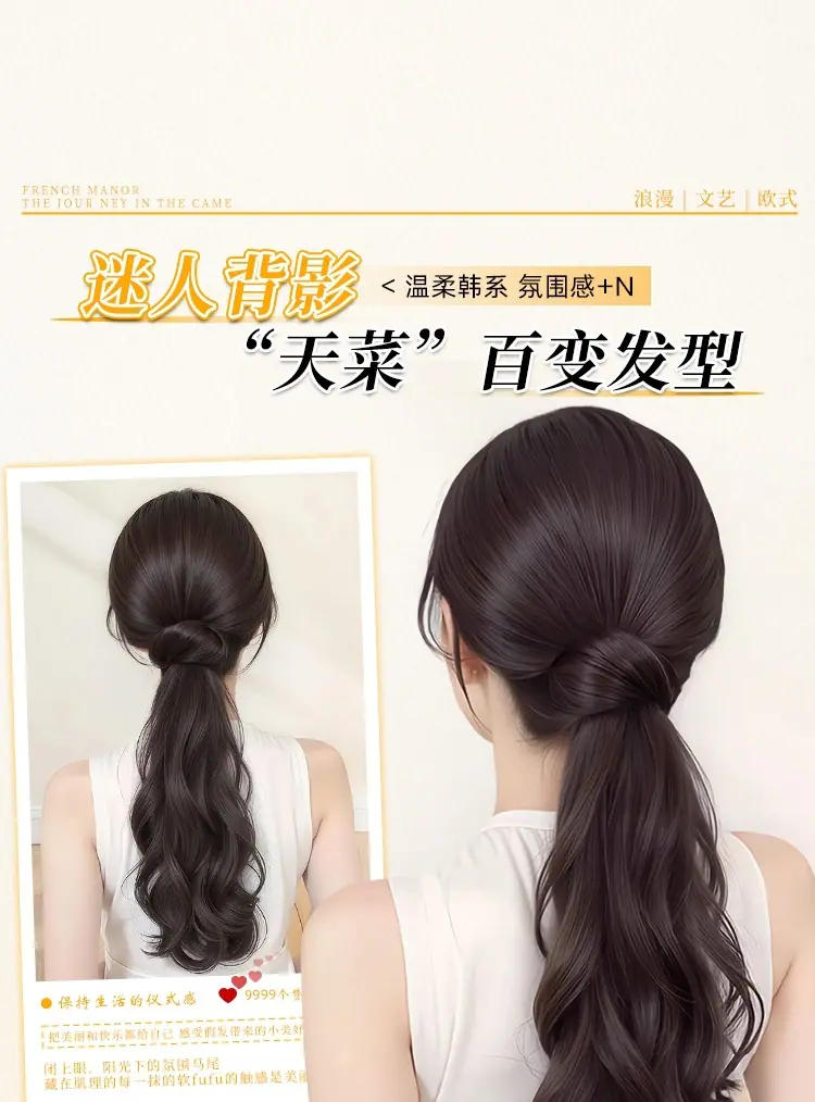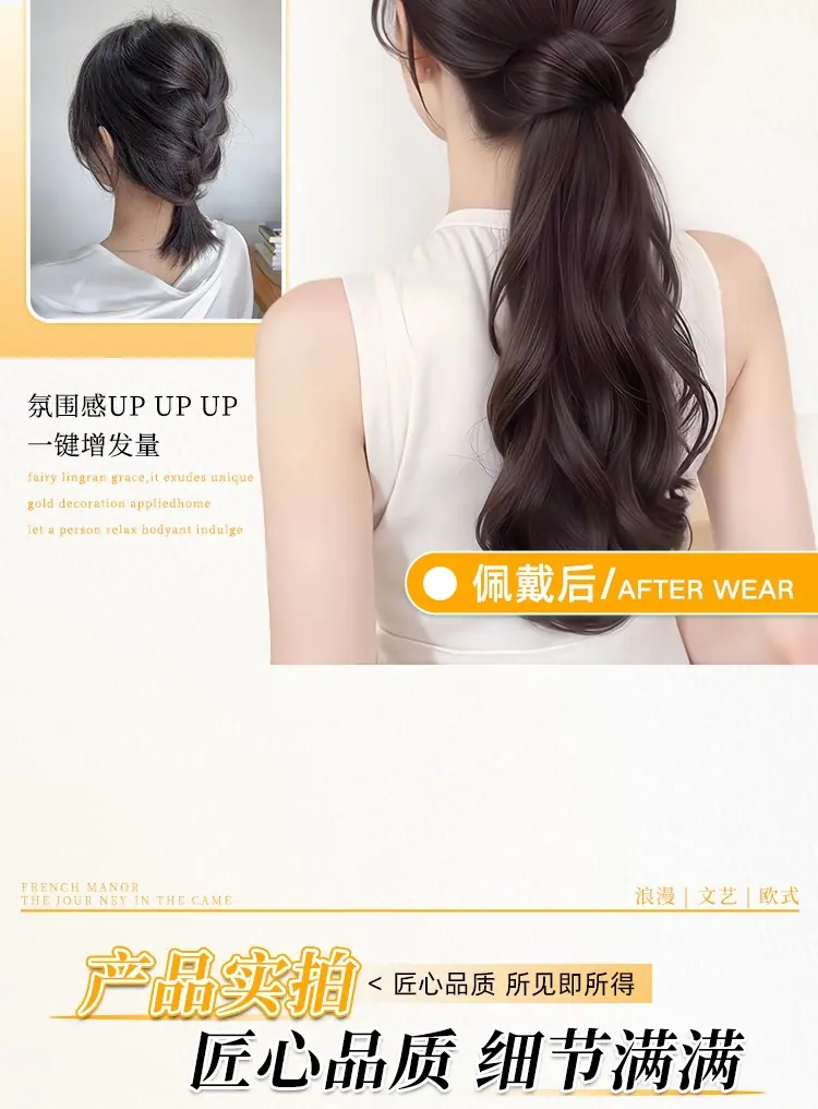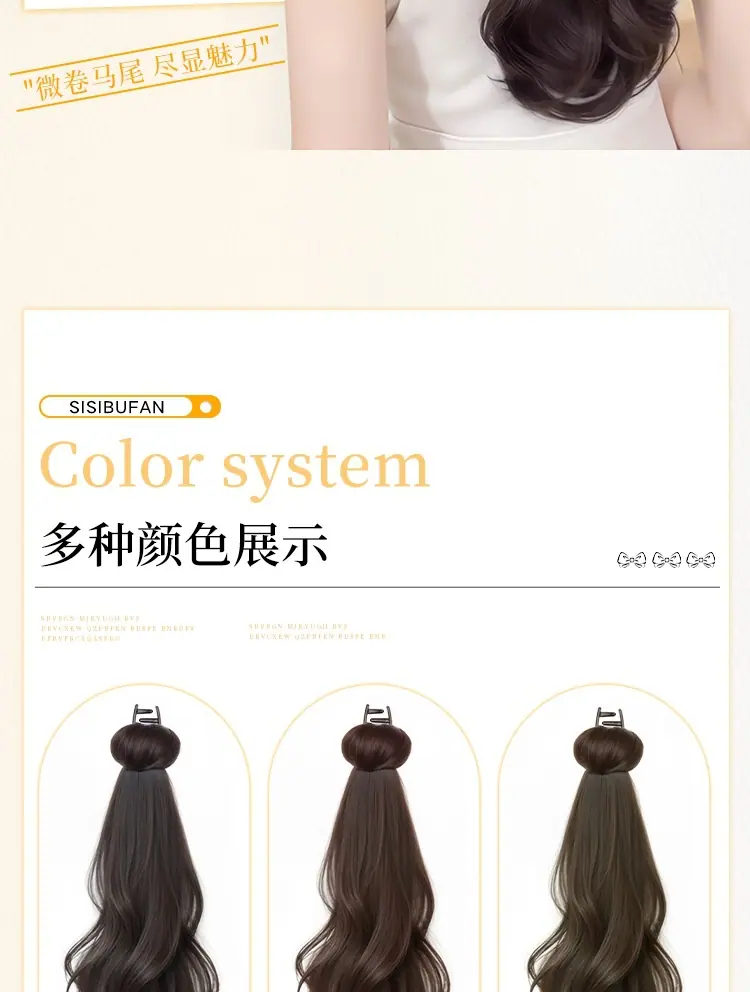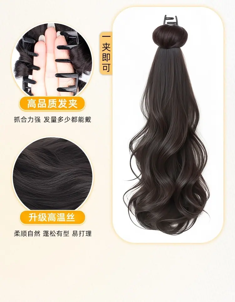 Trança de Peruca para Mulheres Textura Coreana Coque Flor Rabo de Cavalo Simulação Clipe de Garra de Cabelo Amarrado Baixo Natural Micro-Cacheado Peruca Trança Rabo de Cavalo