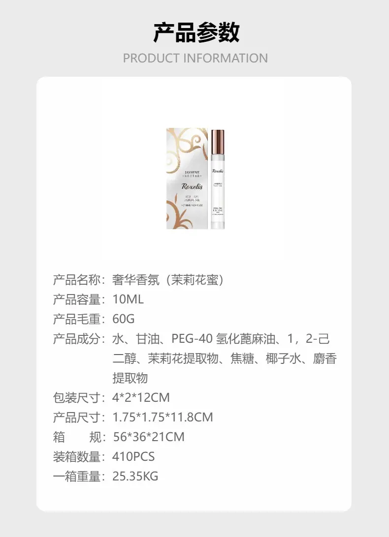 Jasmine Nectar Fragrância de Luxo Fragrância Natural de Néctar de Jasmim Fresca, Elegante, Leve e Portátil Eau de Toilette