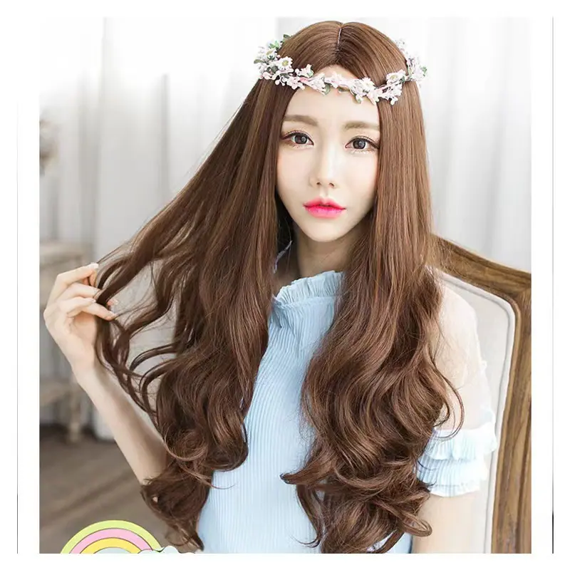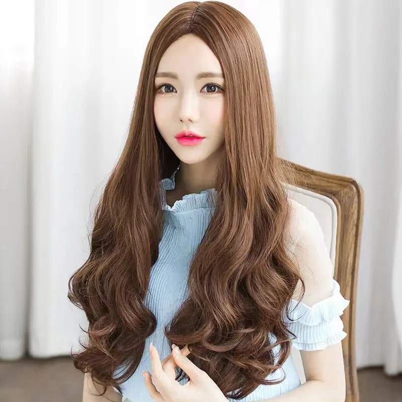 Peruca feminina cabelo longo cacheado onda grande tendência de moda sem franja realista natural respirável fofa cobertura total da cabeça