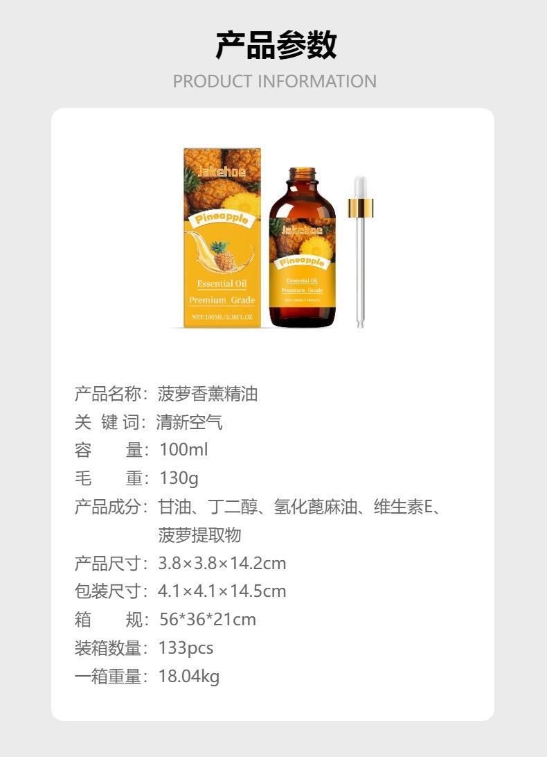 O Óleo Essencial de Aromaterapia de Abacaxi Jakehoe é usado diariamente para lazer e relaxamento para criar uma atmosfera agradável e ar fresco