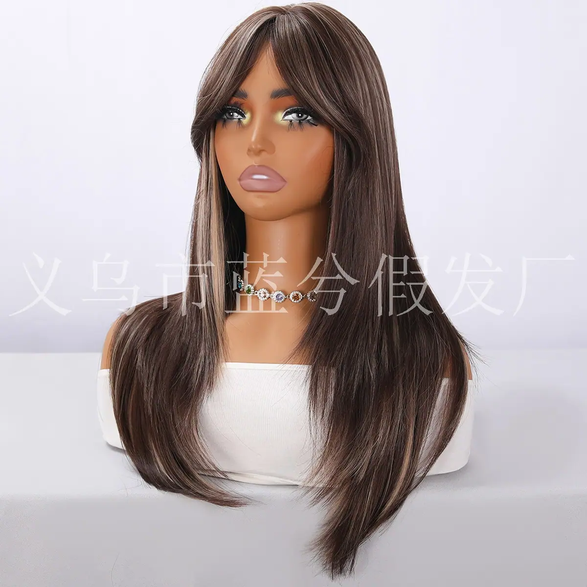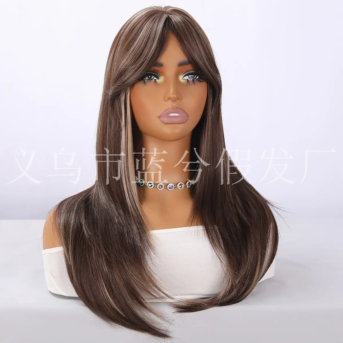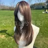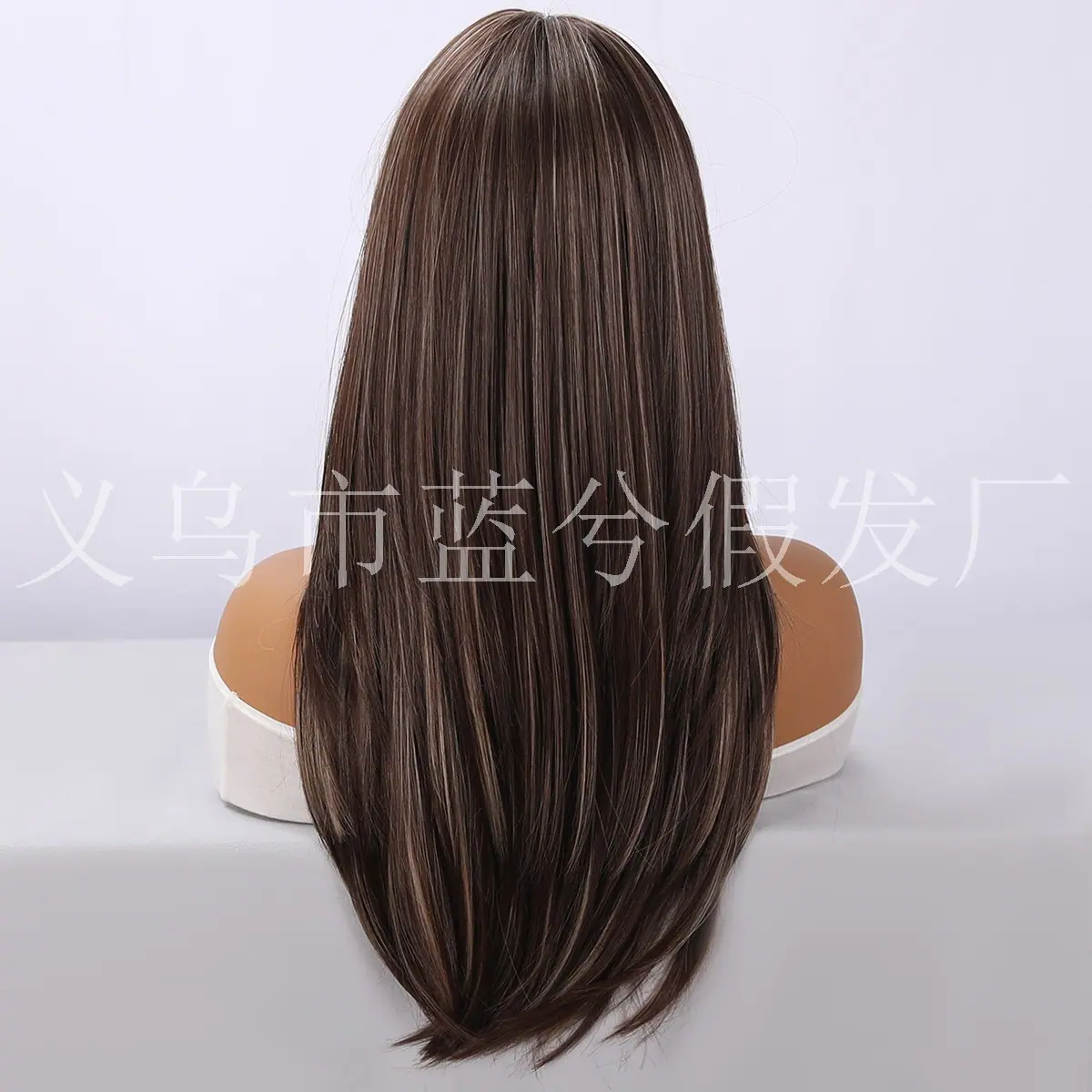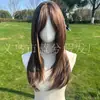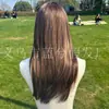 E-commerce Transfronteiriço Europeu e Americano Popular Cabelo Longo Liso Castanho com Mechas Realce Seda de Alta Temperatura Peruca Realista