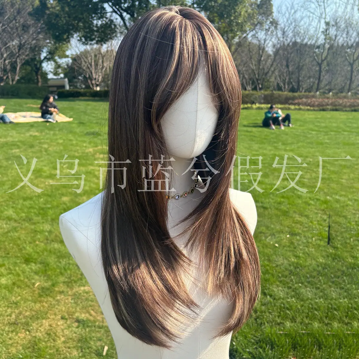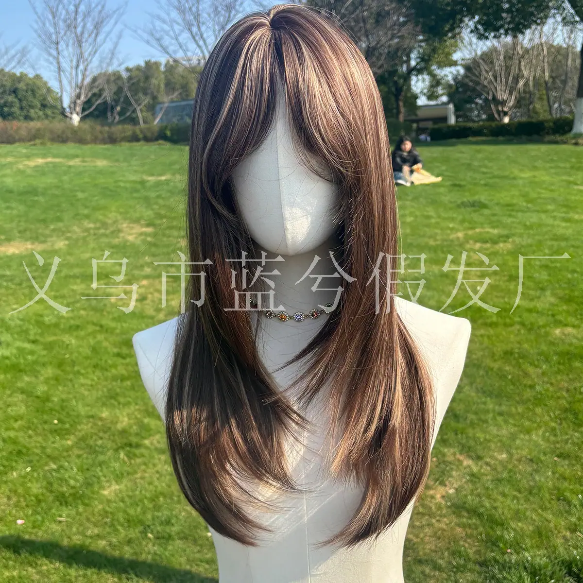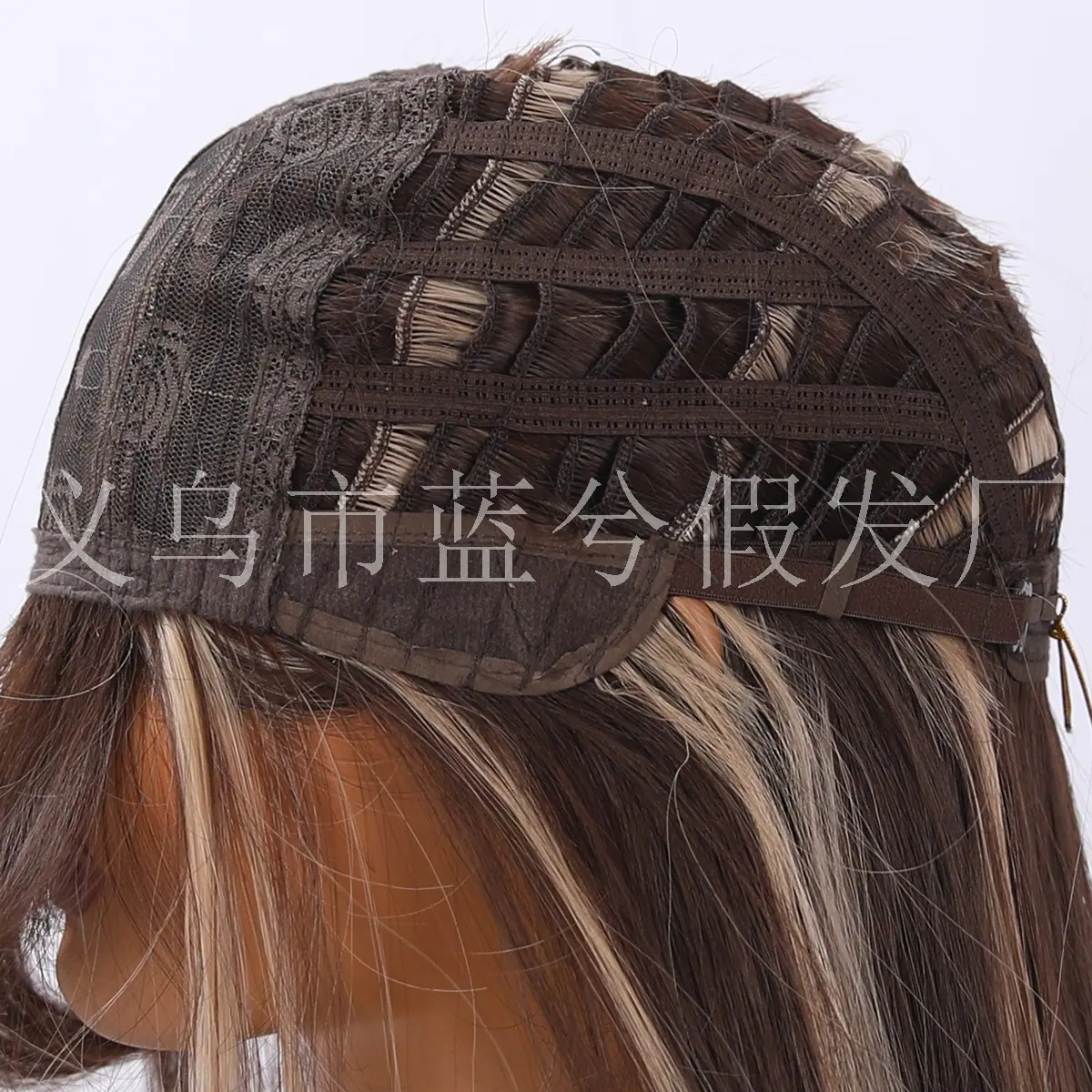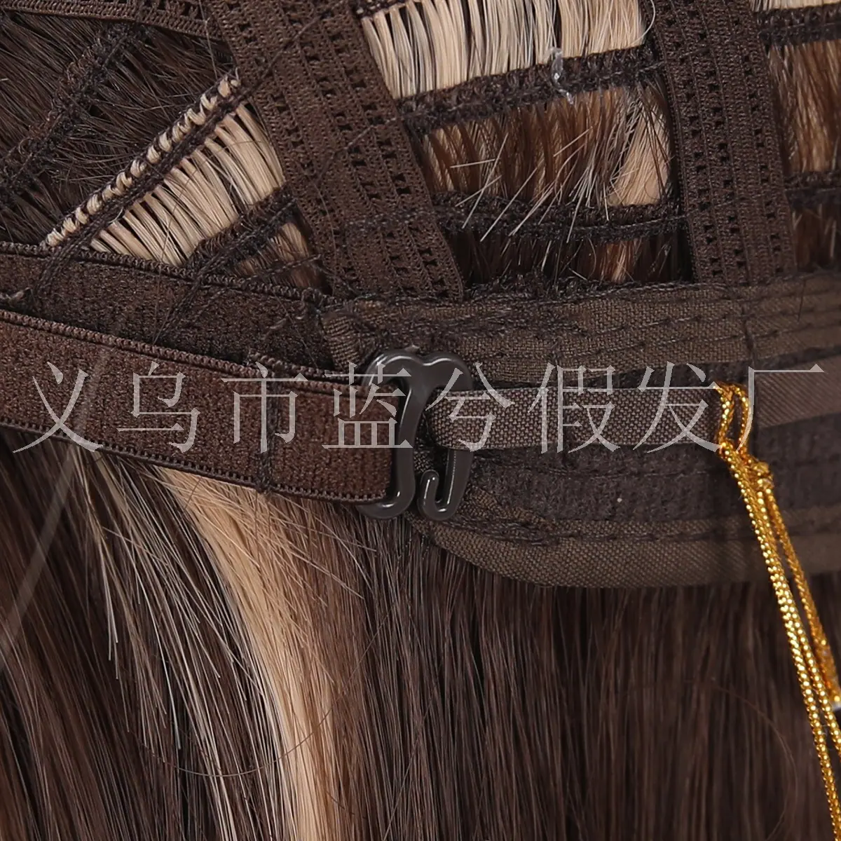 E-commerce Transfronteiriço Europeu e Americano Popular Cabelo Longo Liso Castanho com Mechas Realce Seda de Alta Temperatura Peruca Realista