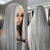 Peruca Transfronteiriça Cinza Cinza Europeia e Americana Peruca de Cabelo Humano Peruca Hir Humano Peruca com Tela Frontal