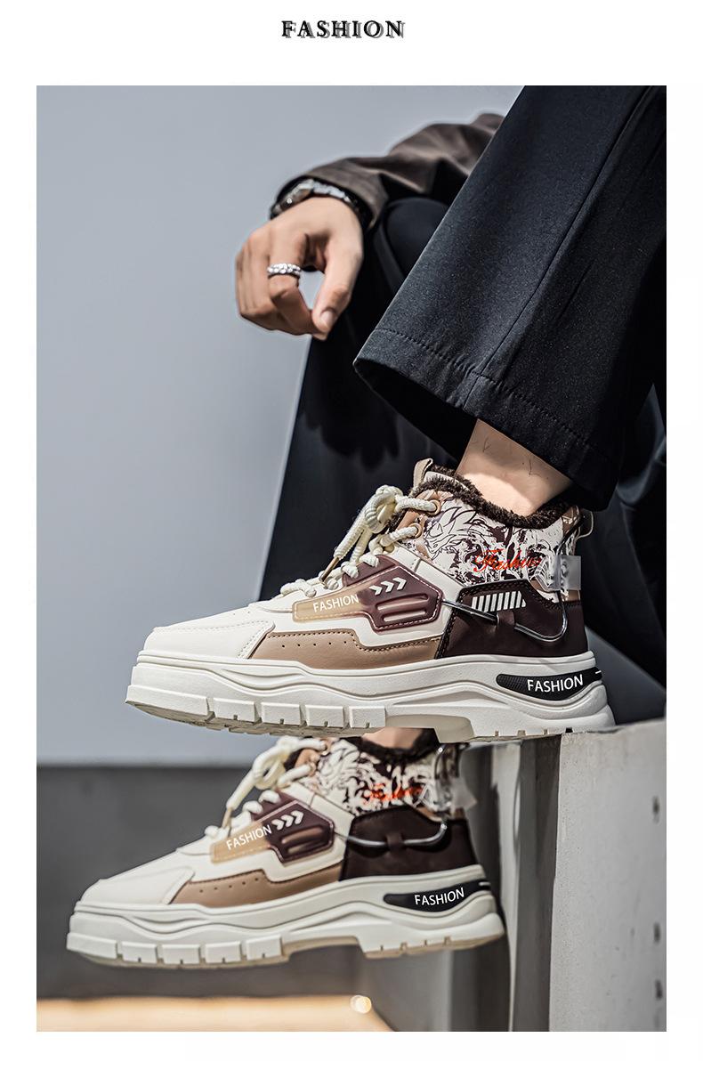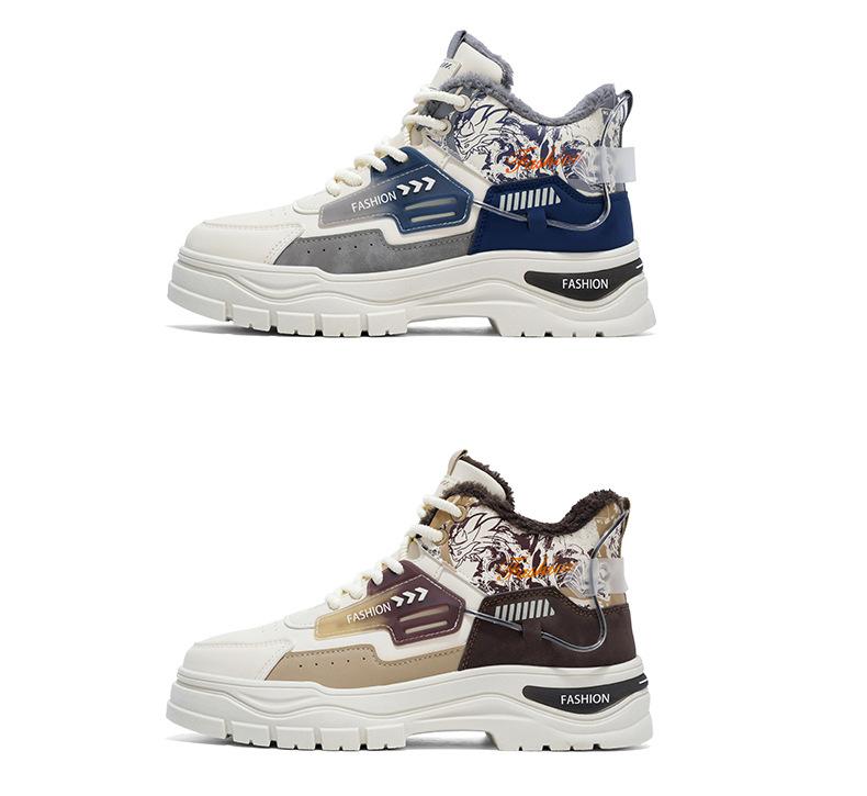 Sapatos masculinos de cano alto inverno novo mais veludo quente resistente ao frio dois sapatos de algodão superfície de couro masculino ao ar livre antiderrapante impermeável botas de trabalho