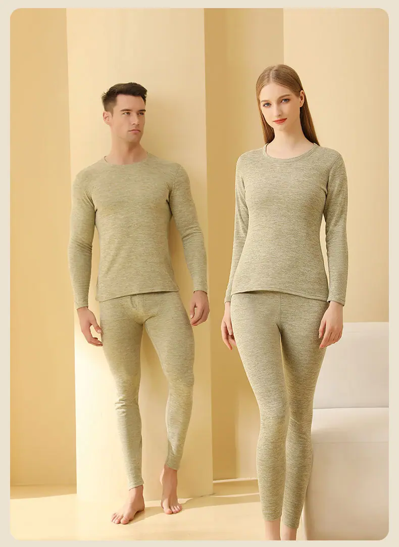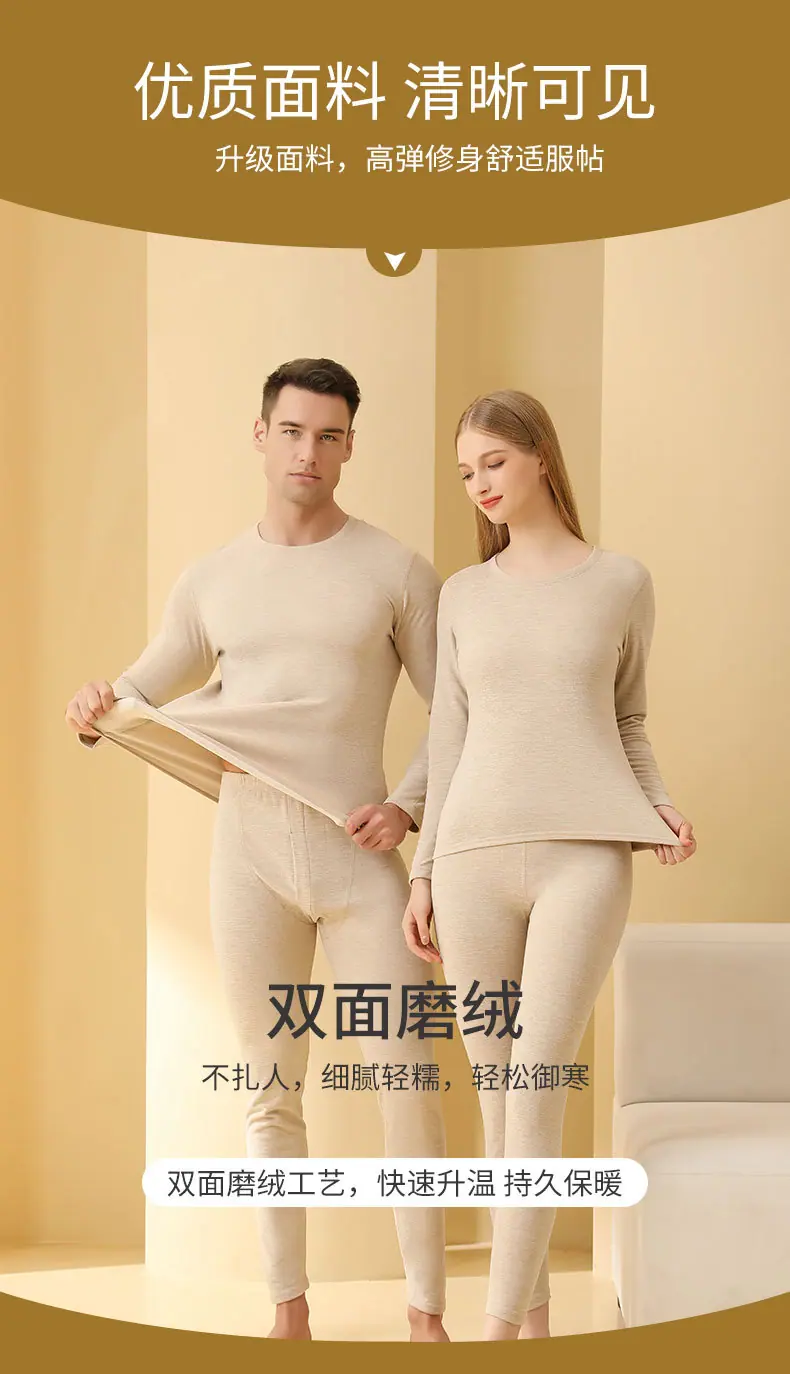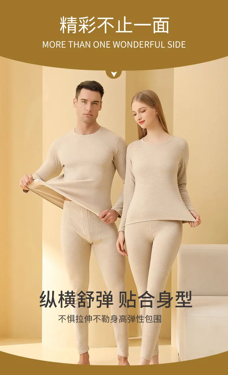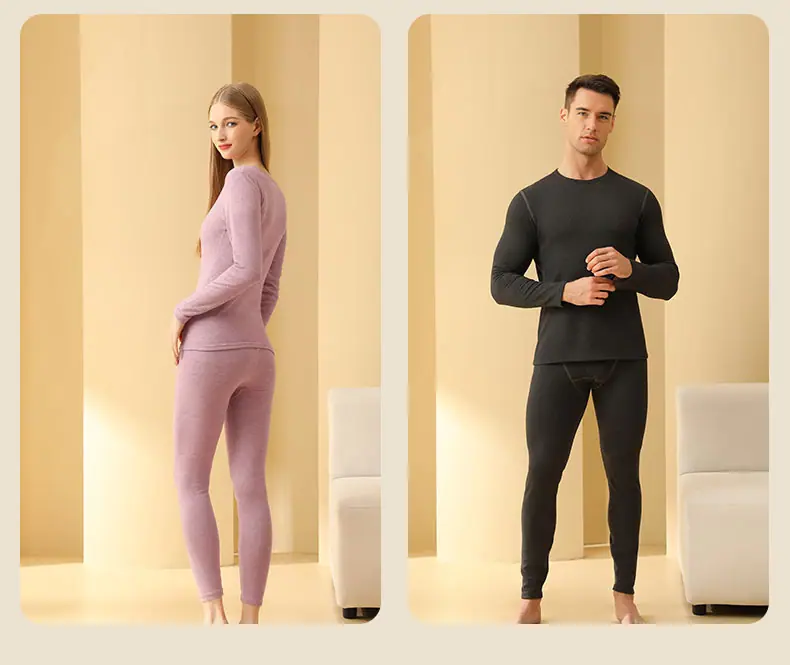 Conjunto de Roupa Íntima Quente Novo 2025 Outono e Inverno Masculino e Feminino Roupas de Outono Calças de Outono Lã Seda Camada Base Roupa Quente Atacado