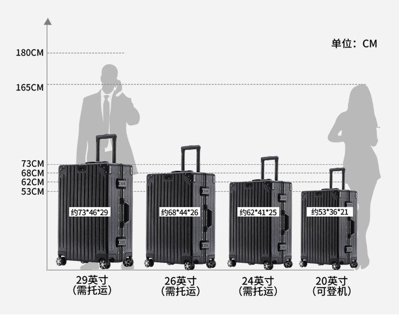 Mala com Logotipo Personalizado Estrutura de Alumínio 20 polegadas Mala Trolley Roda Universal Masculino e Feminino Mala Estudante Caixa com Senha Grande Capacidade